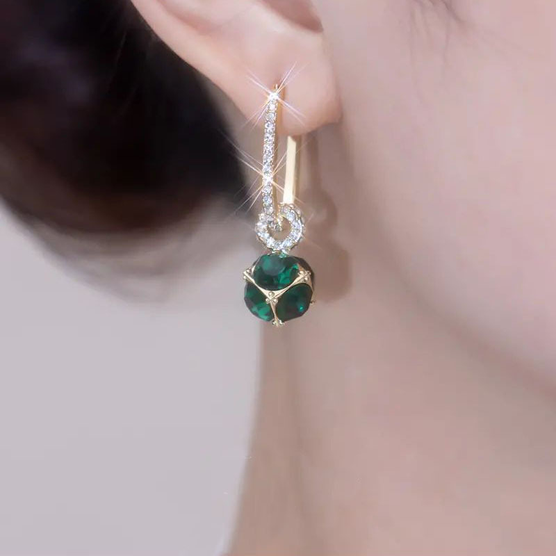 豪華で高級感があります。フランスのレトロな緑のボールのイヤリングです。