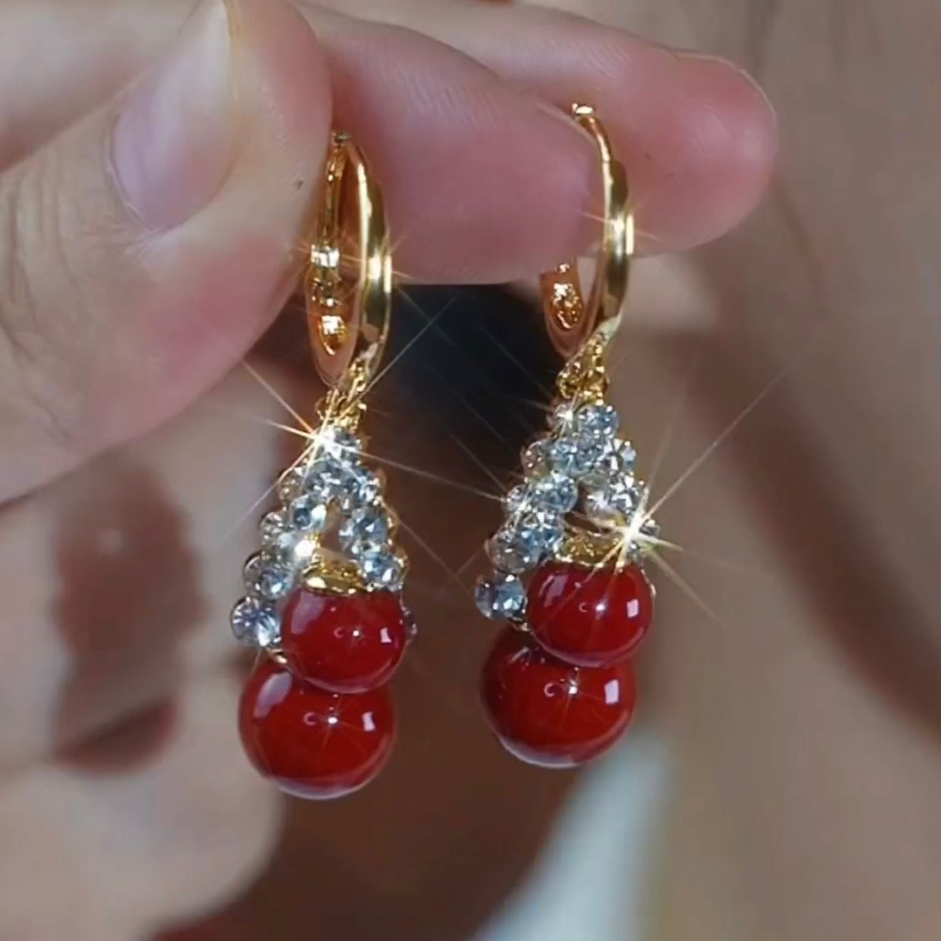 高級感のある軽やかな贅沢、アカシア豆イヤリング、2025年新作、赤いパールイヤリング、社交界の気質、甘いイヤリング、トレンド