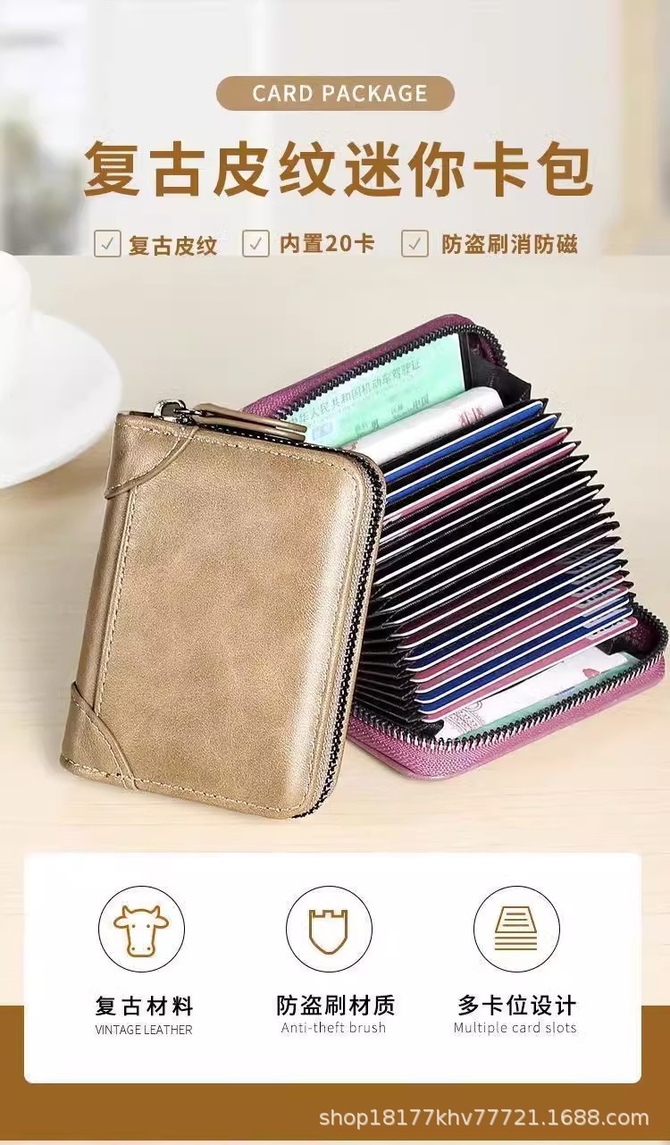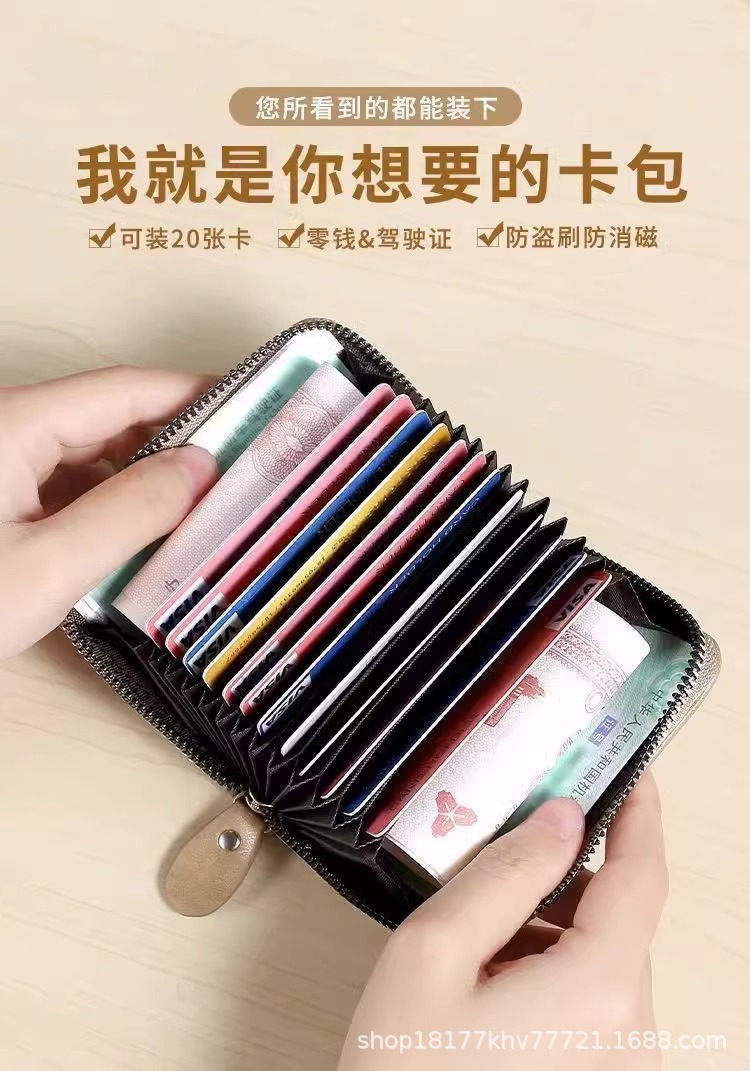 广州市班亚奴皮具厂卡包男真皮多卡位防消磁防盗刷驾驶证卡片包女
