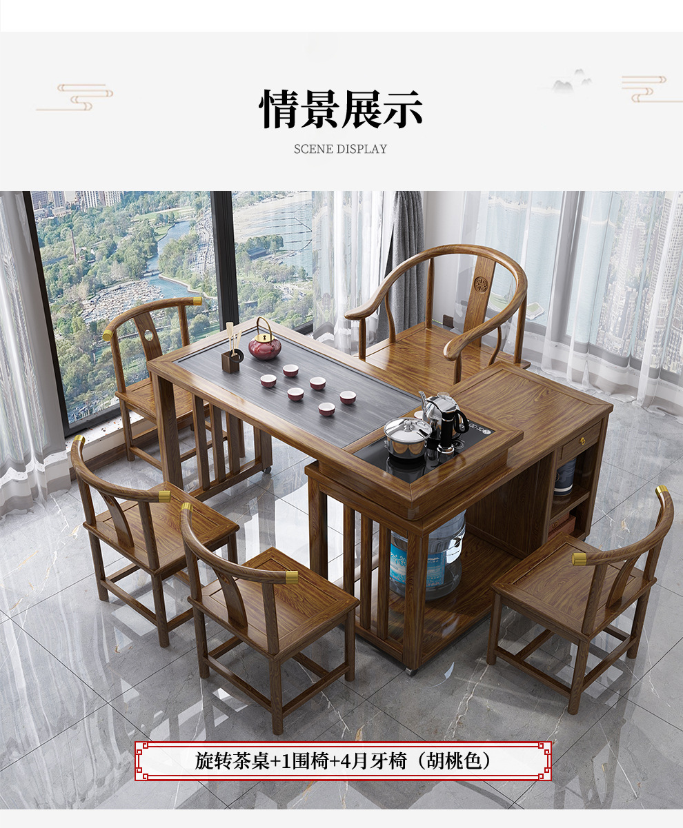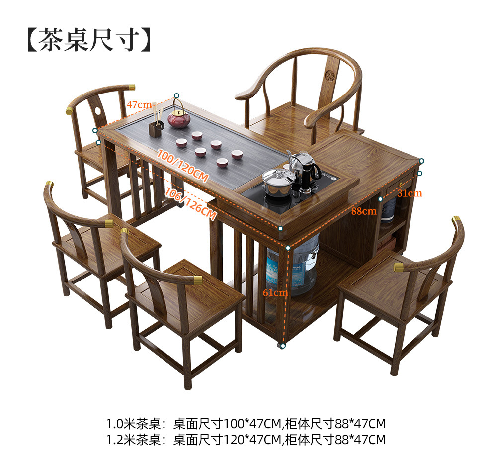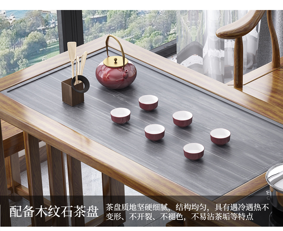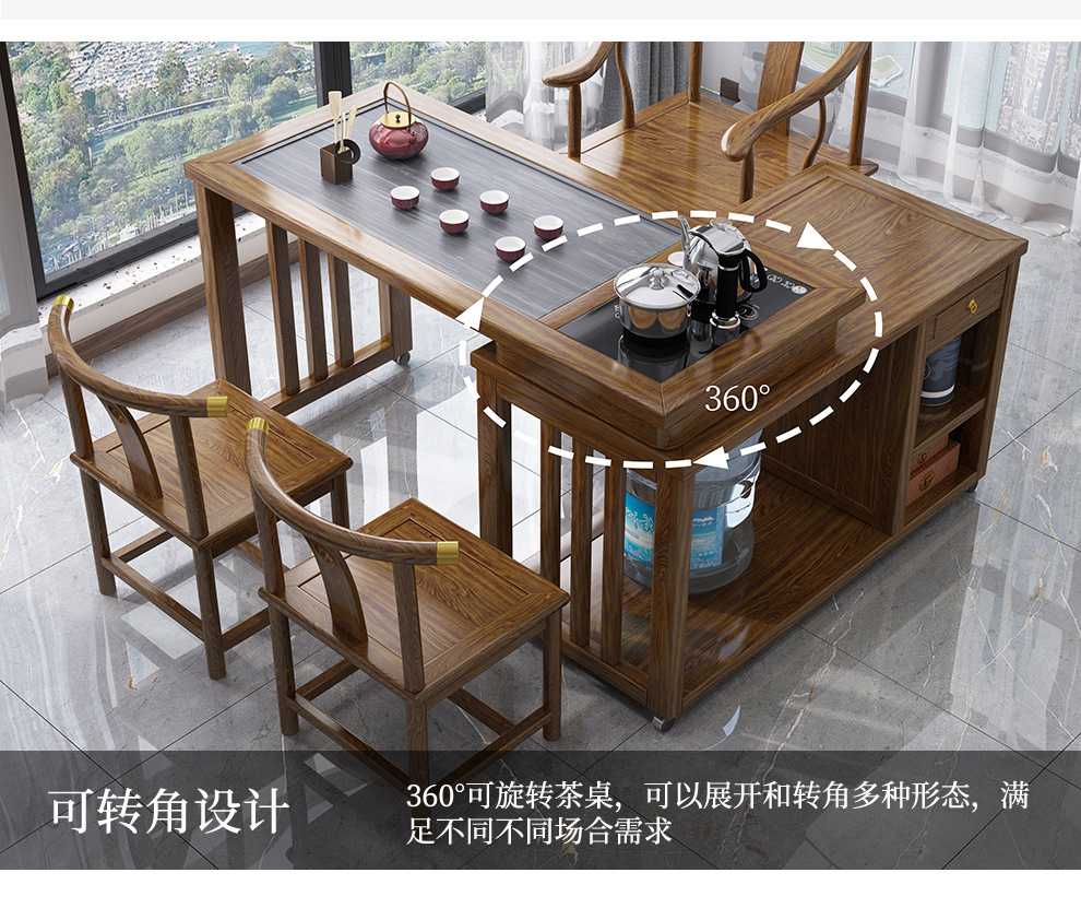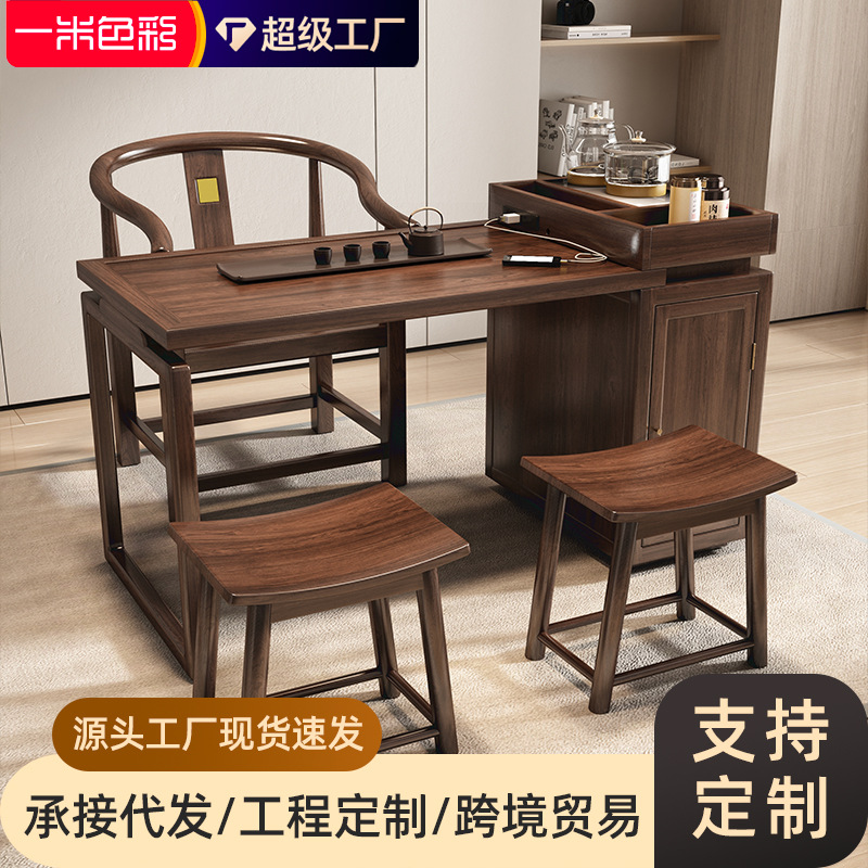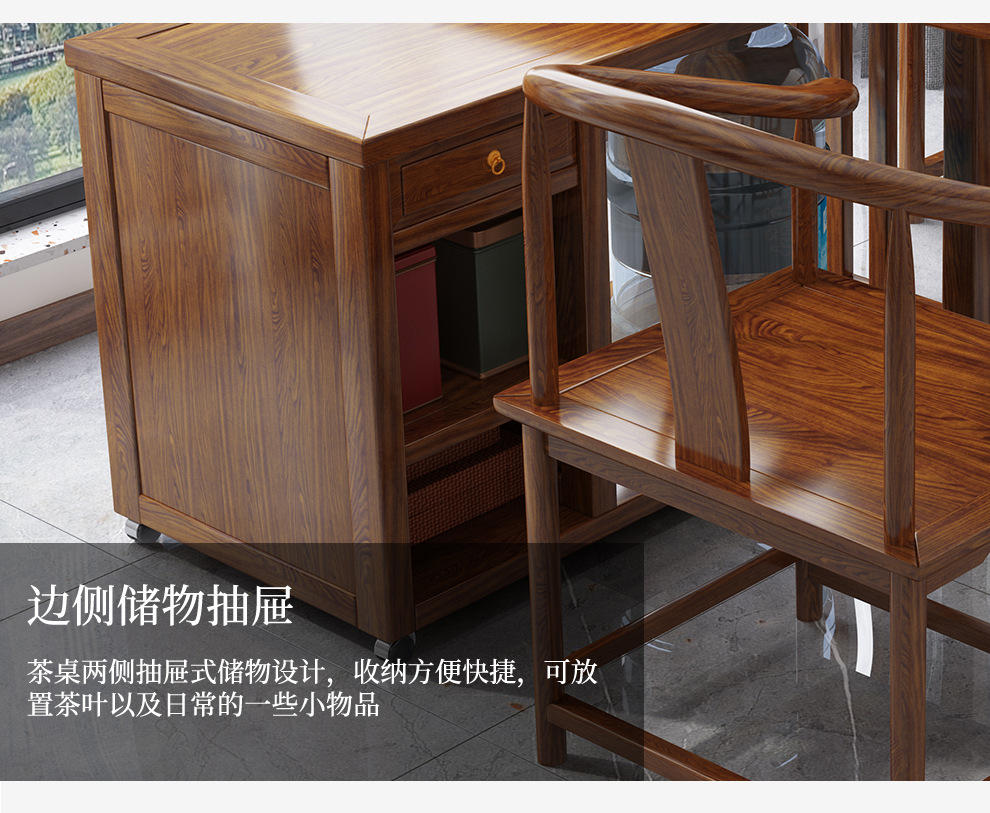 無垢材バルコニーティーテーブル、新中式ティーテーブルと椅子の組み合わせ、お茶を飲むためのオフィスティーテーブル、収納付きティーデスク、ダイニングテーブル