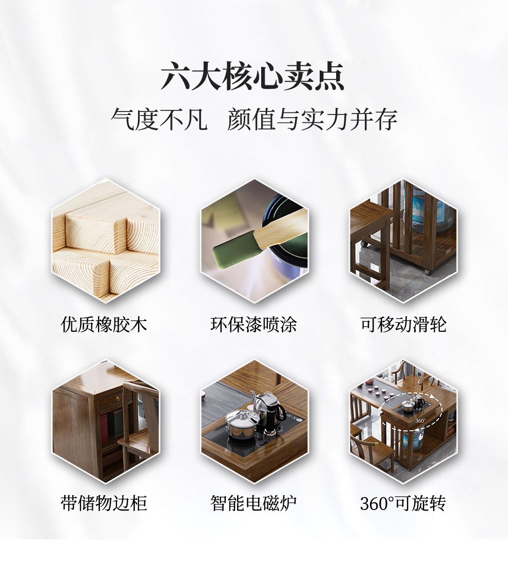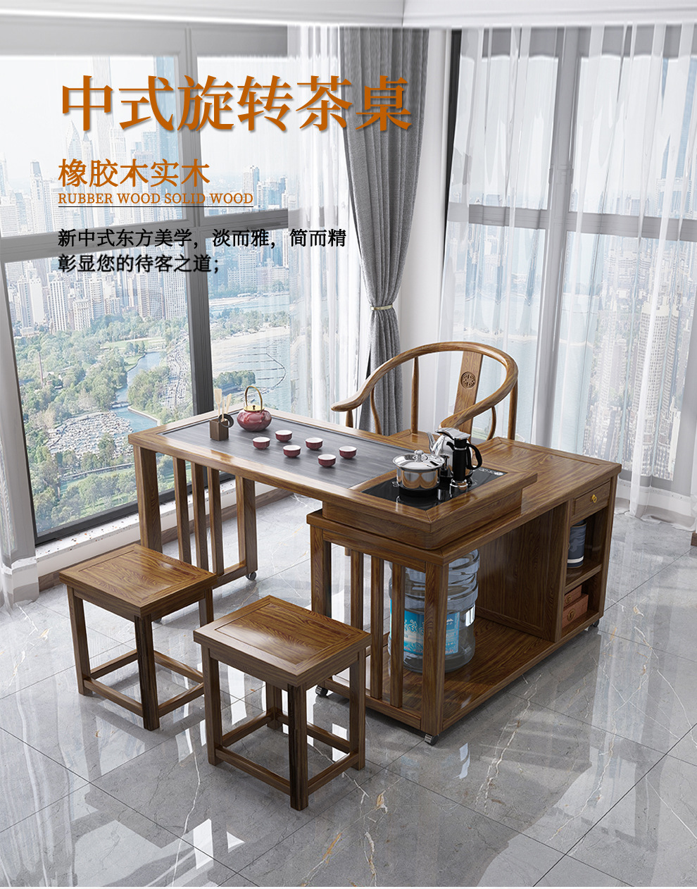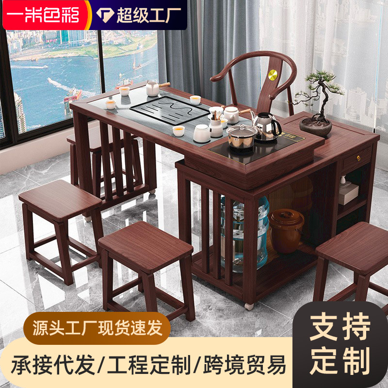 新中式实木岛台茶几客厅家用高级感茶桌烧水壶一体带插座办公茶台
