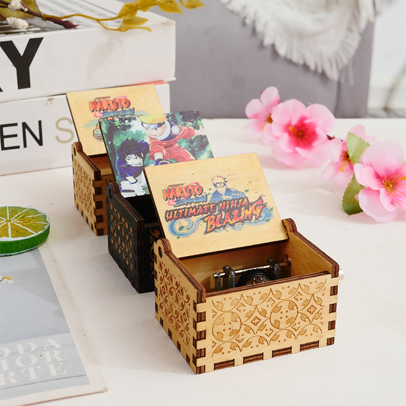 木製オルゴールレトロ色絵アニメナルト木製手回しクリスマスハロウィーンオルゴール