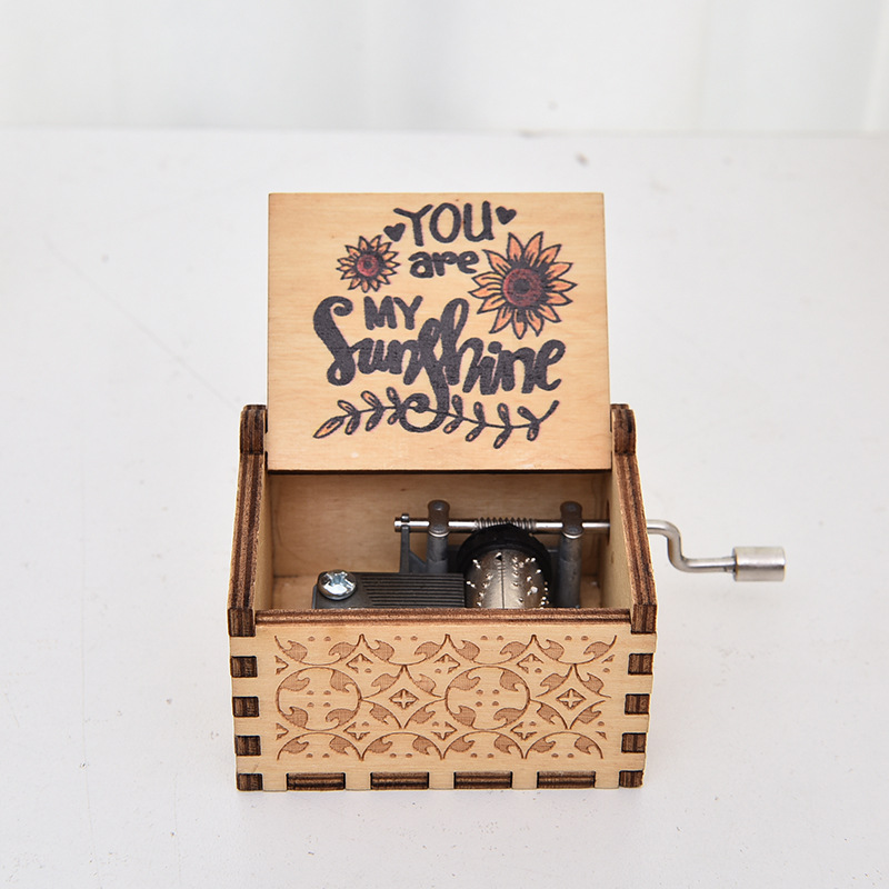 源工場木製手揺オルゴールレトロUV彫刻オルゴール自動ぜんまいオルゴール音楽卸売り
