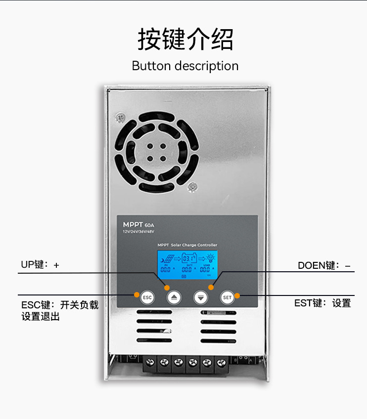 Mppt太陽エネルギーコントローラ60a 12v-48v光起電力住宅車家庭用貯蔵制御システムメーカー現物