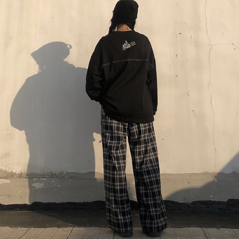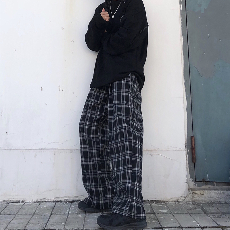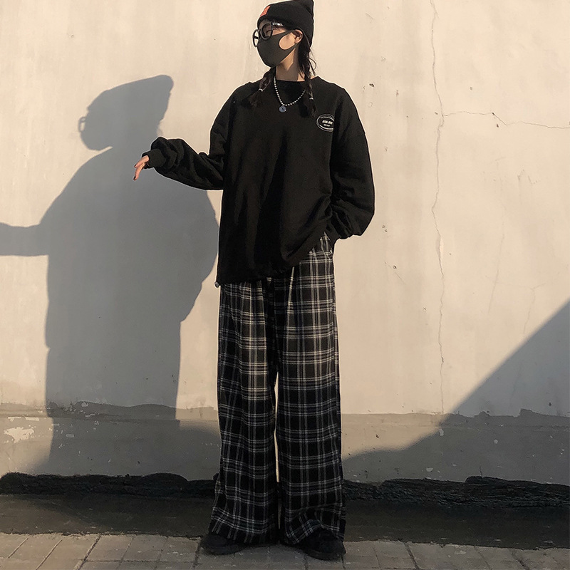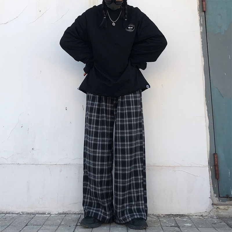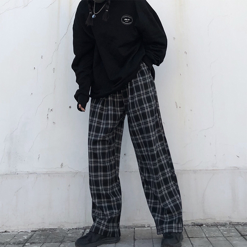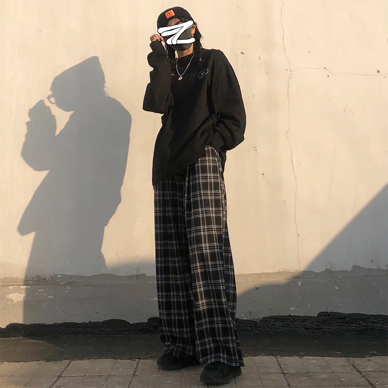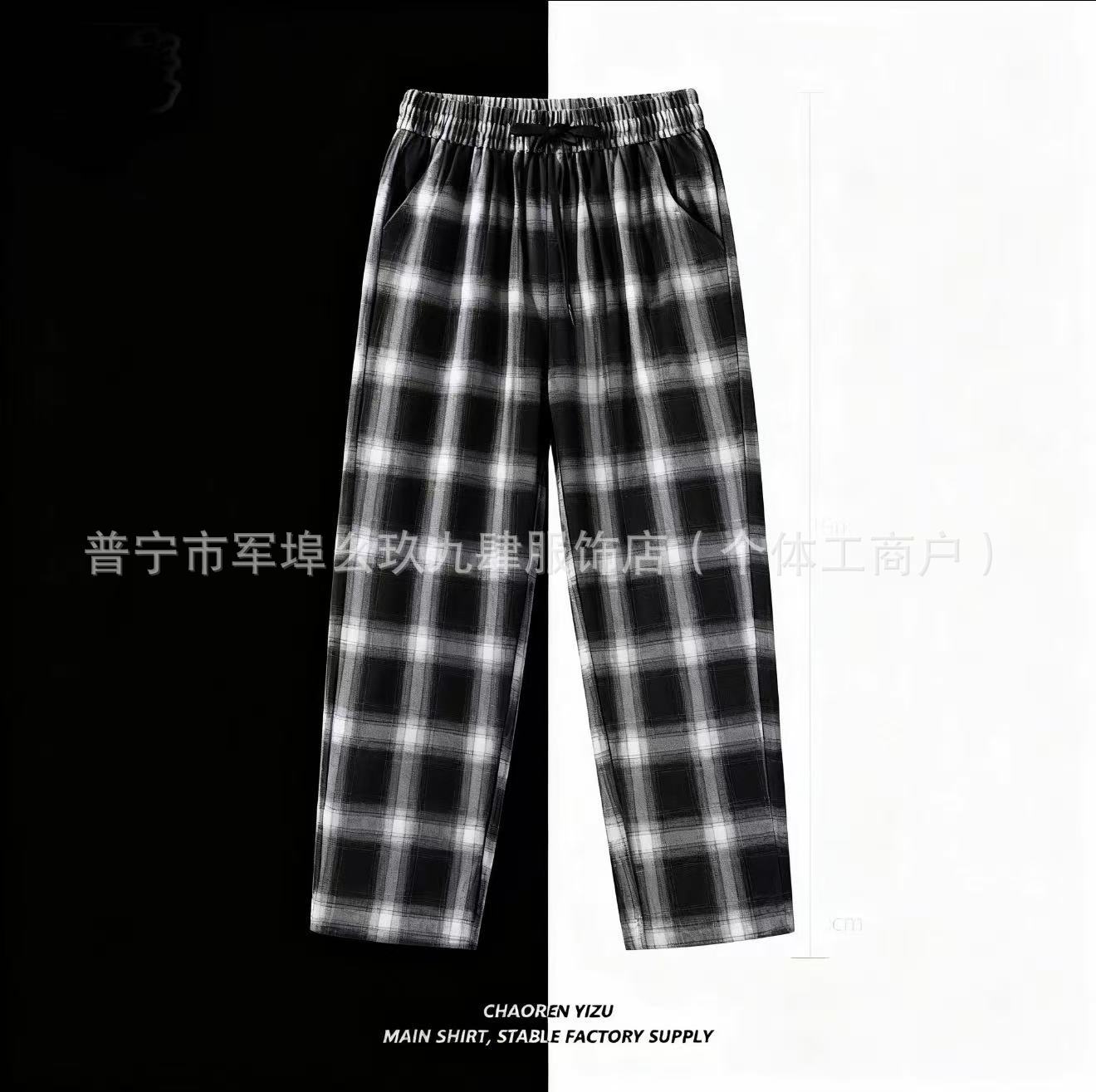 2024年格子縞のズボンの女性春秋韓国版insレトロなズボンがゆったりしています。