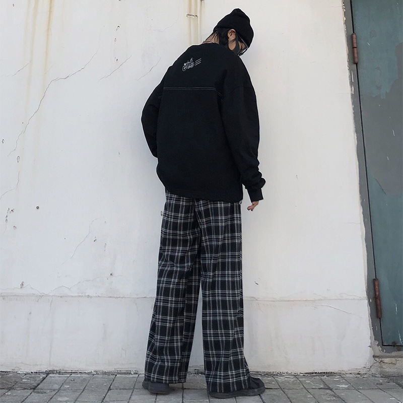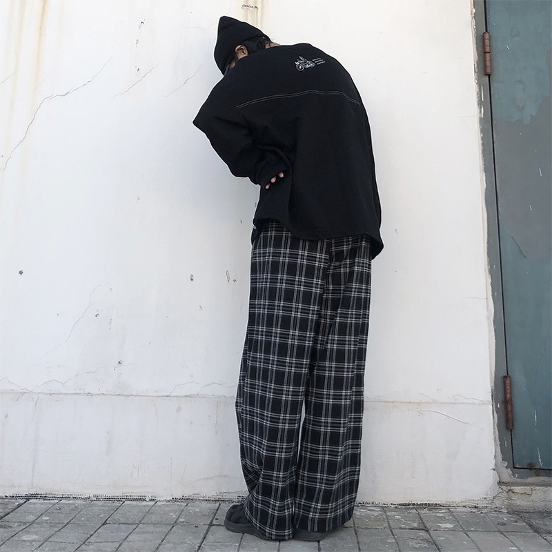 格子裤男薄款复古慵懒黑白格纹阔腿裤垂坠感直筒休闲裤男女亚马孙