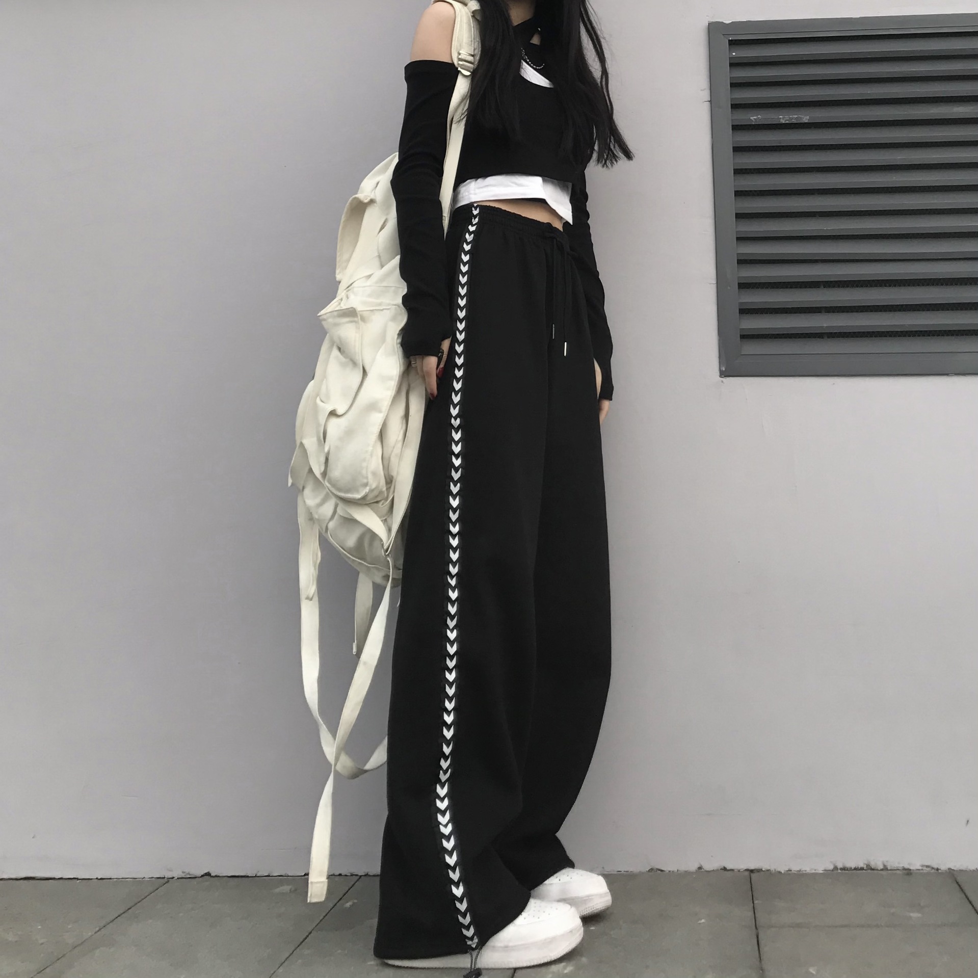 女性向けのスポーティなパンツデザイン、秋のレギンスパンツ、ゆったりとしたハイウエストのスリムなストレートワイドレッグパンツ、カジュアルパンツ