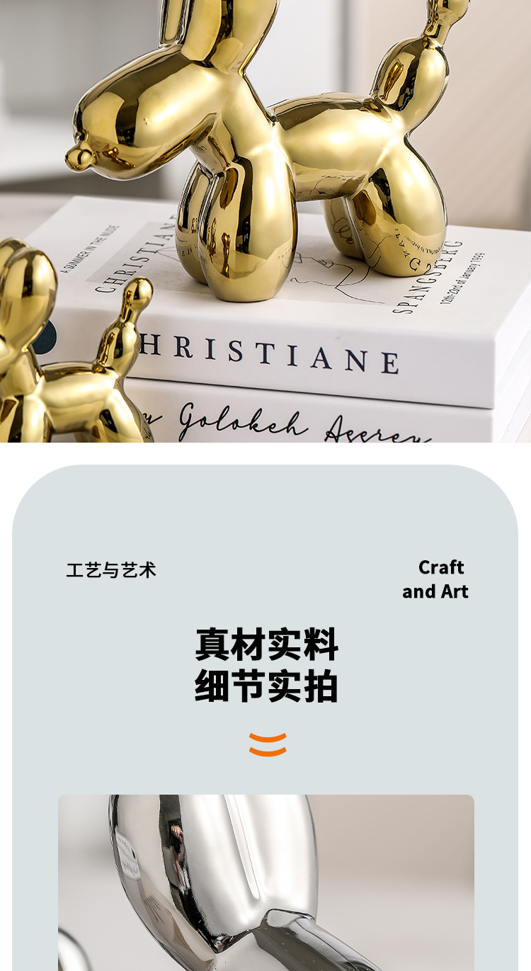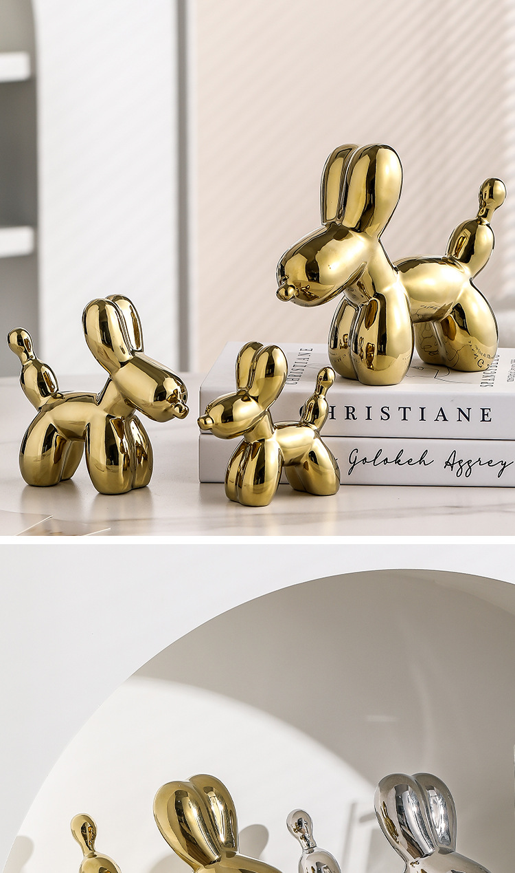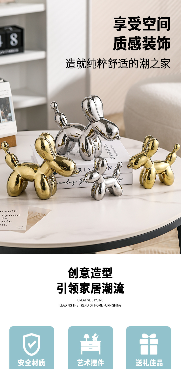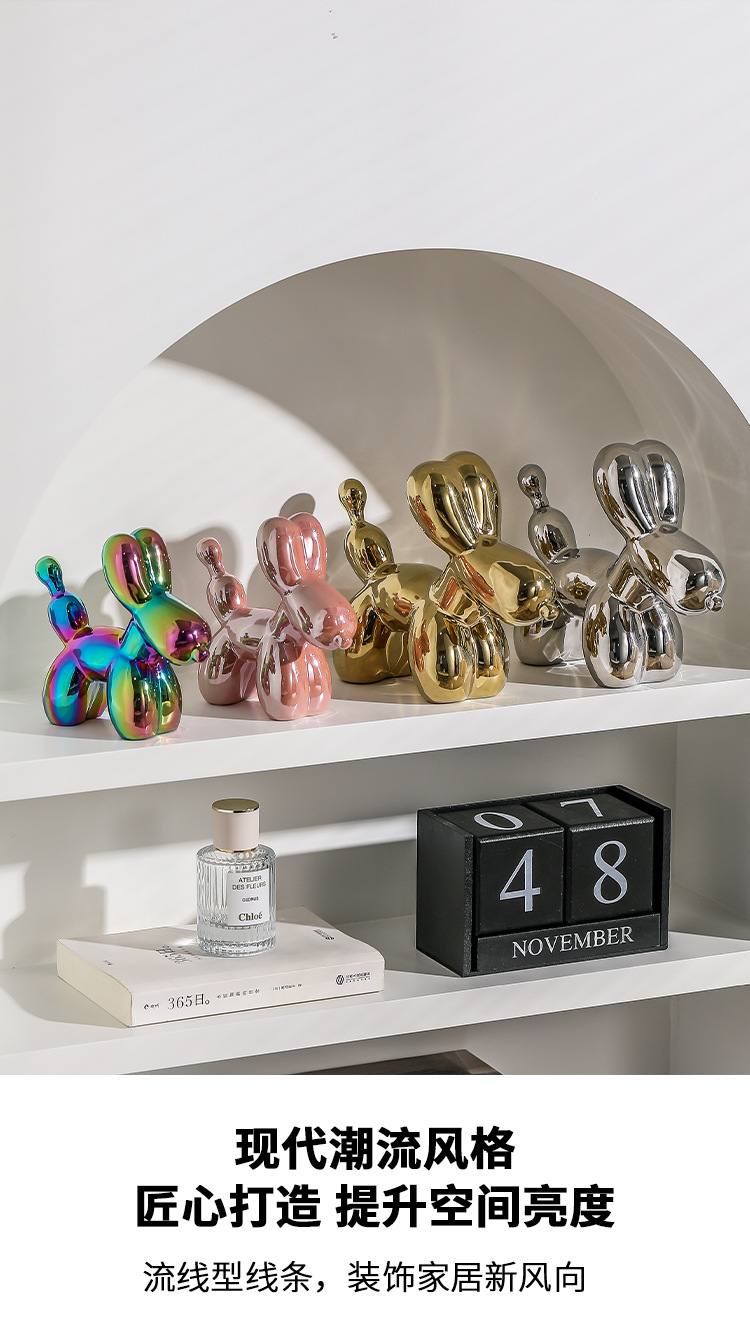 北欧ライト高級ホームデスクトップ装飾品電気メッキバルーン犬セラミックリビングルーム玄関ワインキャビネット漫画人形装飾