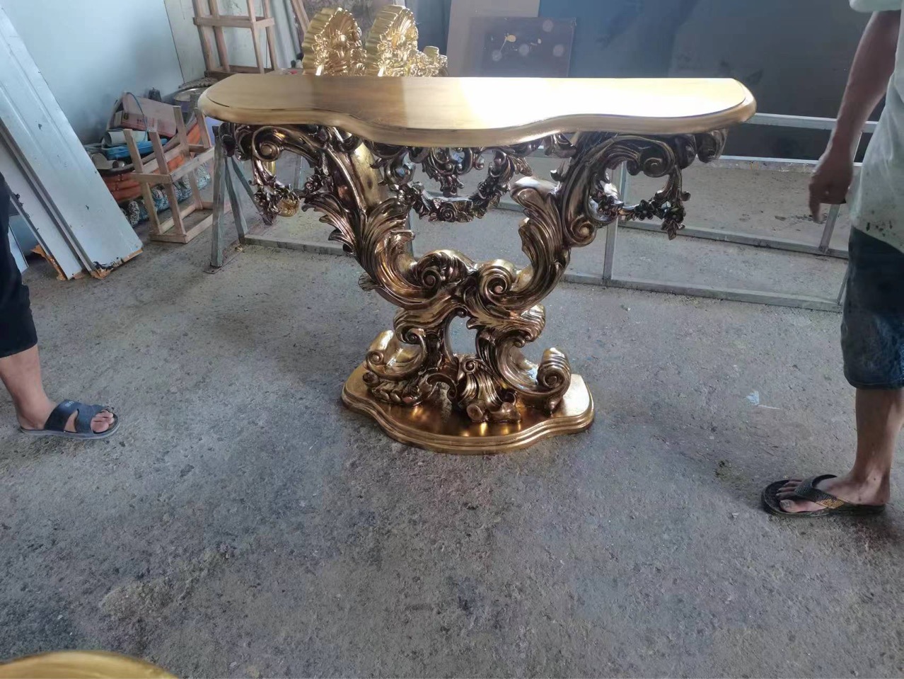 ヨーロッパ式のレトロな彫刻の玄関テーブルは古いテーブルのホールに似せています。