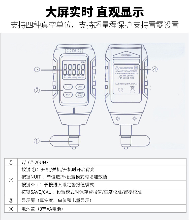 精创VGW-Mini 数字真空计HVAC冷媒真空计 1/4 SAE