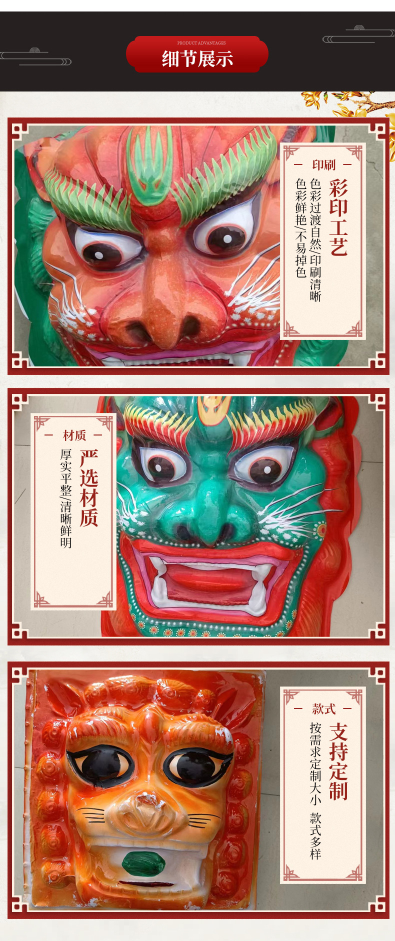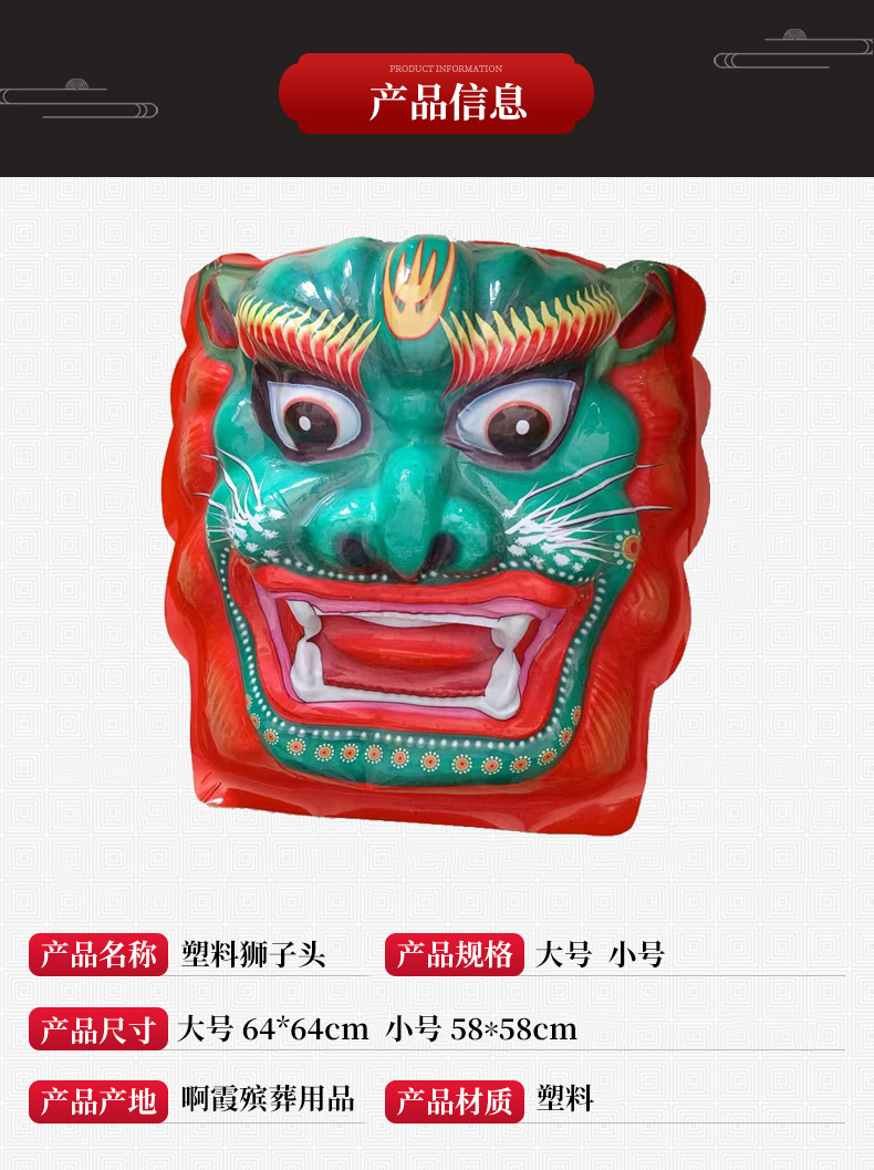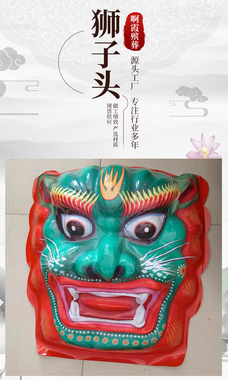 メーカーの卸売り葬儀用品はライオンの頭のプラスチックのライオンの頭のライオンの顔の祭祀の紙の活紙を刺します。