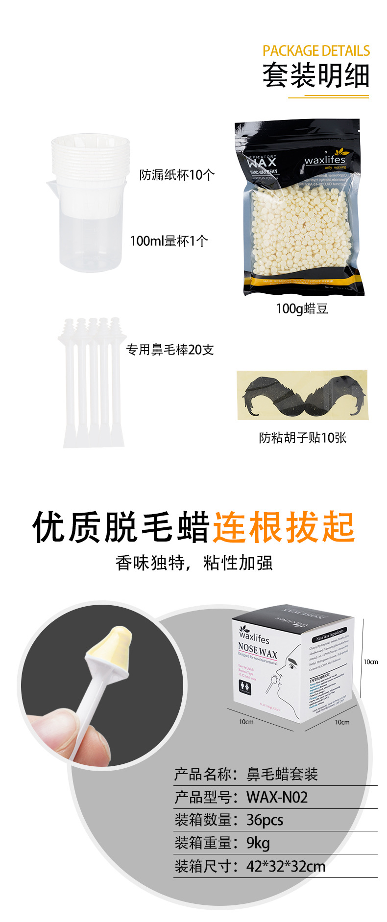 欧米の脱鼻毛セットnosewax固体脱毛ミツロウ豆鼻毛整理クロスボーダー専用メーカー卸売り