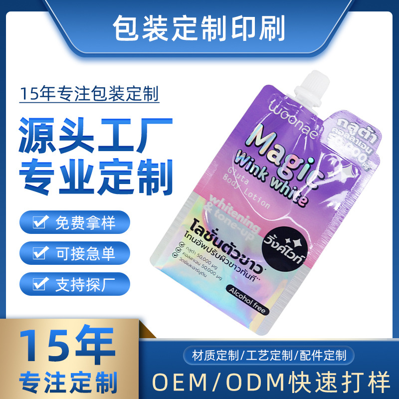 三辺封レーザーグラデーションロゴ化粧品包装袋カスタムボディミルク携帯口袋乳液分注袋