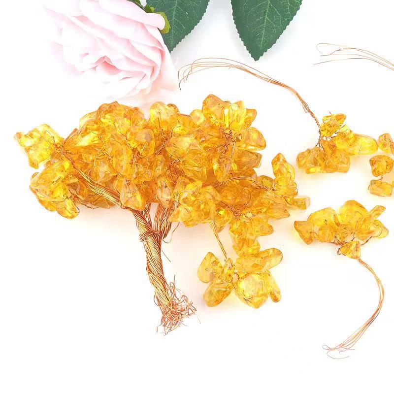 メーカー製クリスタルフォーチュンツリー花串、イエロークリスタル焼き色フォーチュンツリー花串、DIYクリスタルツリー風水ツリー製作