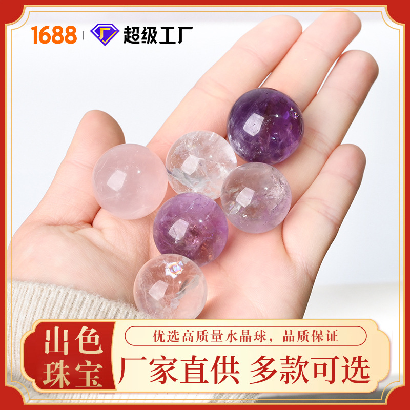 出色珠宝天然小尺寸紫水晶粉水晶白水晶球diy手工制作配件天然装