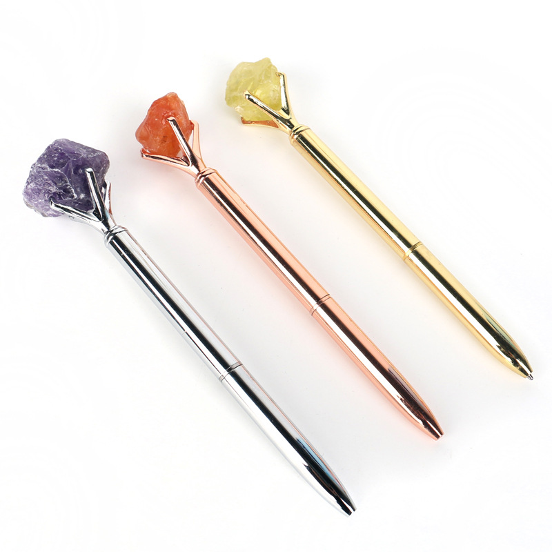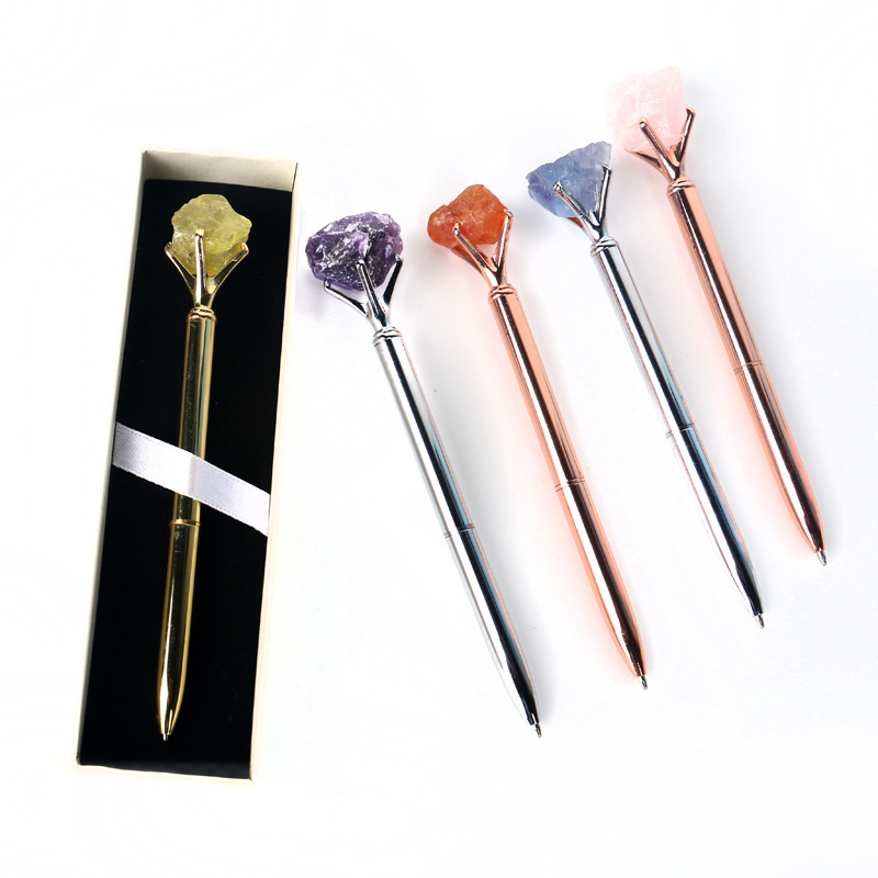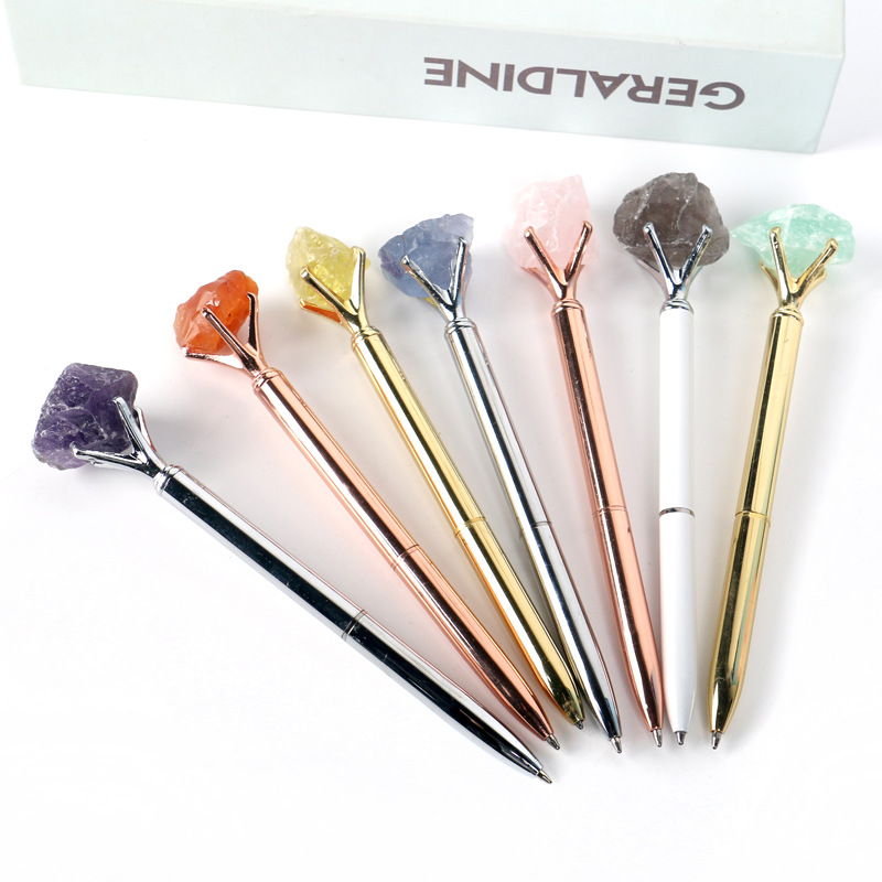 天然水晶原石宝石ボールペンカラー学生筆日常プレゼント中性筆メーカー卸売り