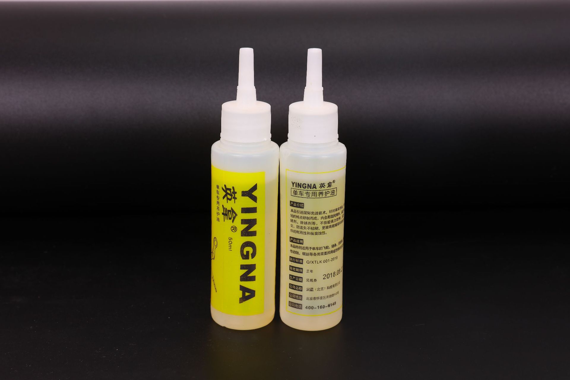 英は自転車のチェーン油を持って死んで潤滑油を飛ばします。マウンテンバイクのチェーン油を持っています。