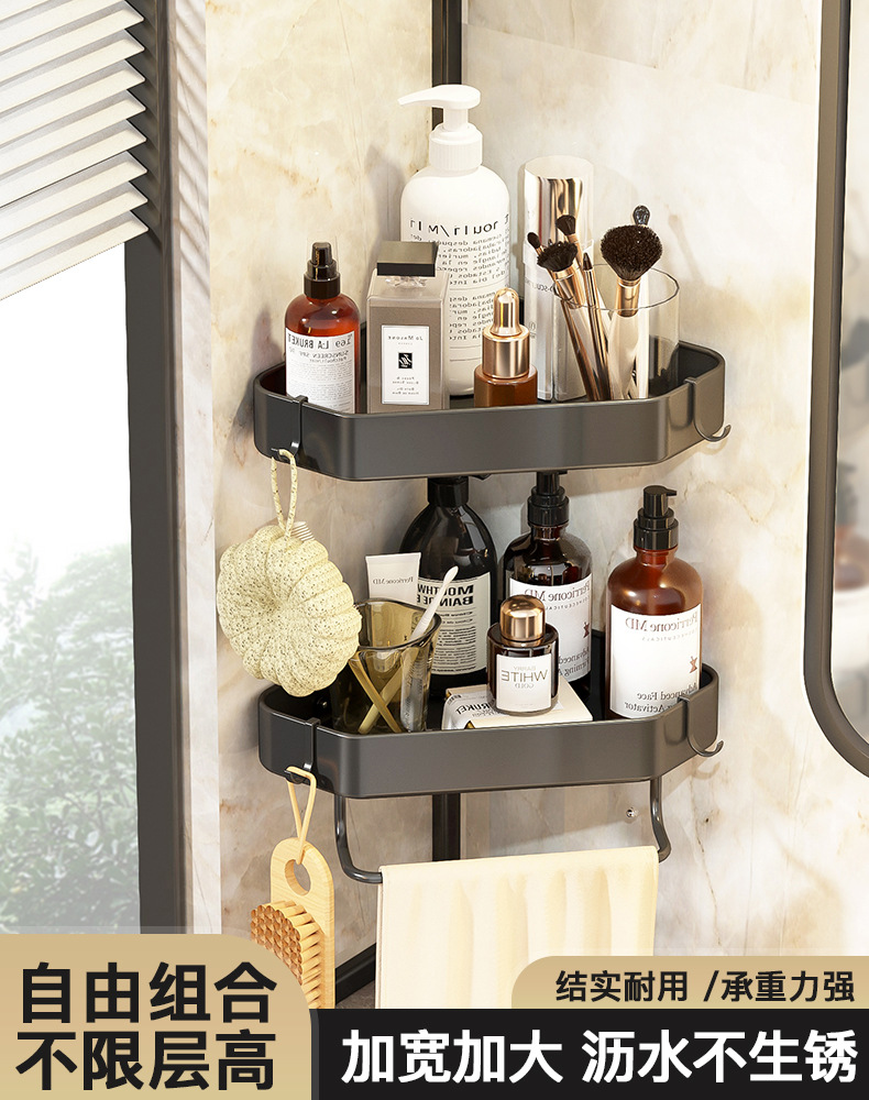 浴室コーナーラック三脚キッチン収納ラック排水ラック多層調節可能な穴なし壁掛け式家庭用