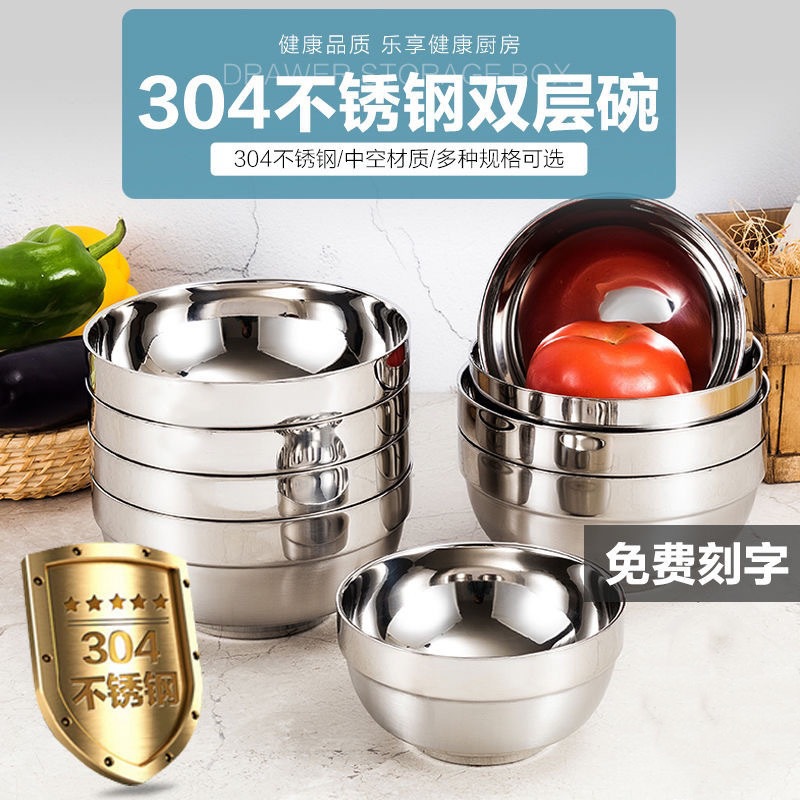304ステンレス家庭用ボウル二重断熱ステンレスプラチナボウル小学校食堂学校断熱ボウル