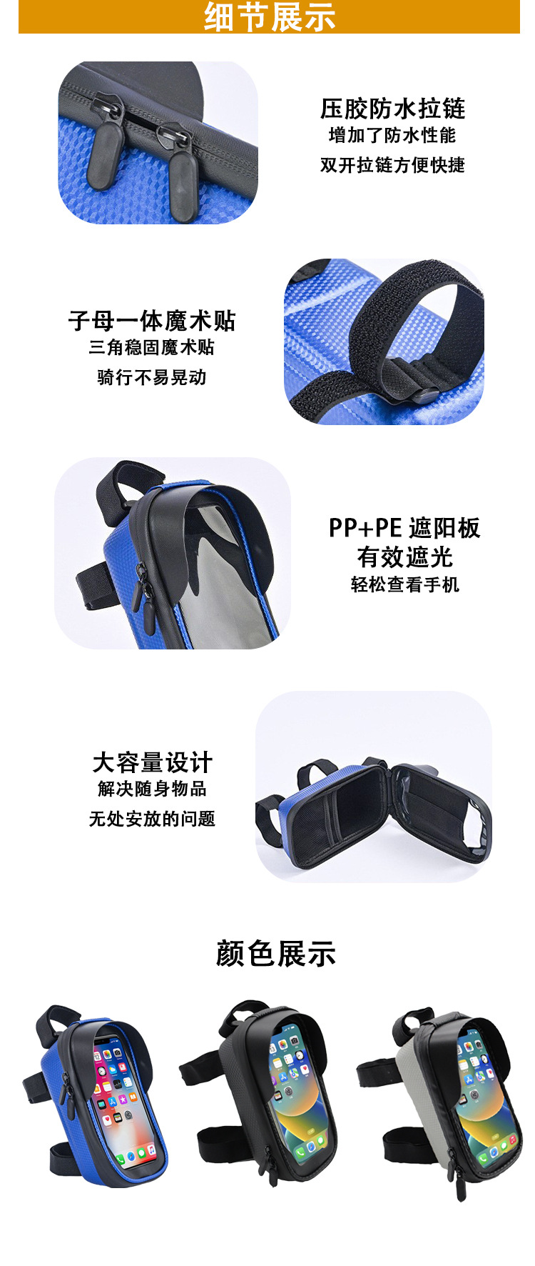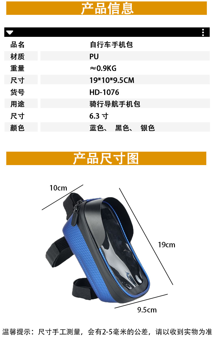 クロスボーダー屋外ロードサイクリング自転車携帯電話防水バッグ自転車バッグトップチューブバッグマウンテンバイクビームバッグ