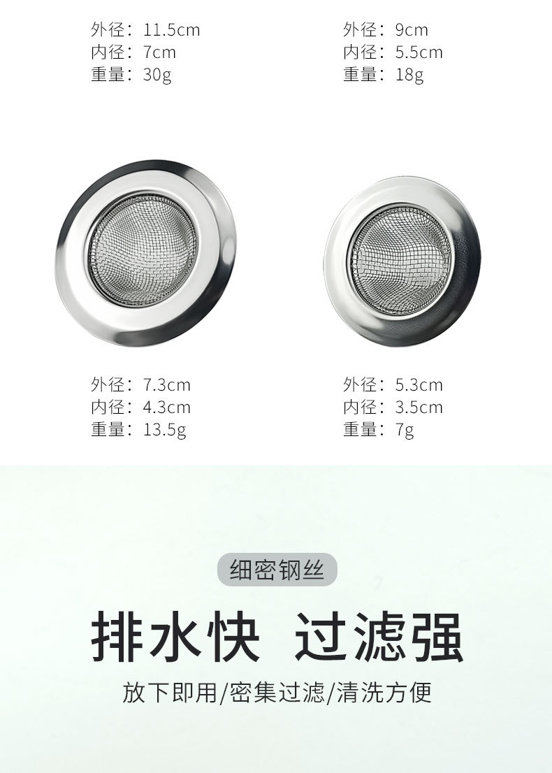 跨境不锈钢浴缸水槽过滤器 淋浴排水口毛发收集器厨房水槽过滤网