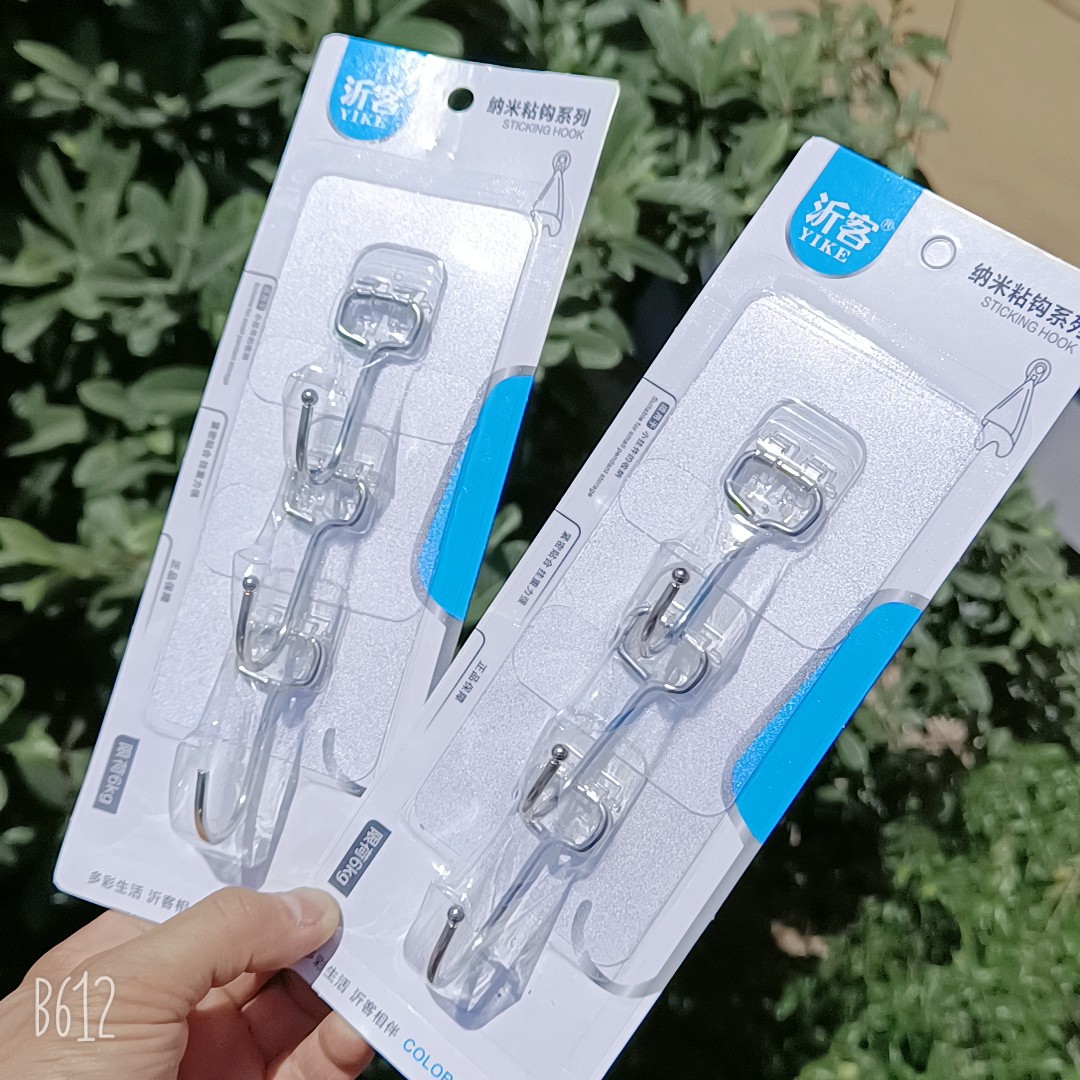 批发3个装强力无痕粘钩免打孔挂钩厨房浴室门后墙壁透明挂衣钩