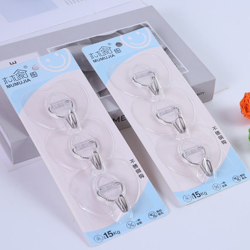 卸売り3個入り強力無痕フック穴なしフックキッチン浴室ドア後壁透明フック