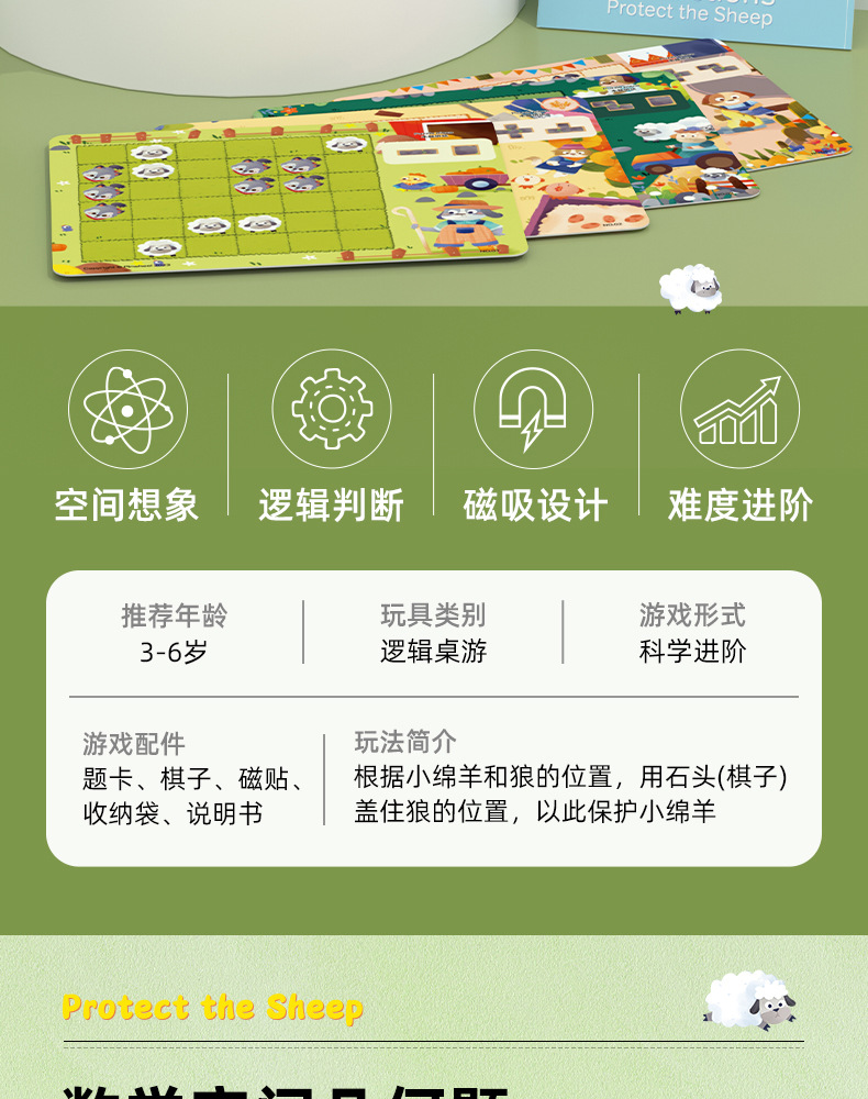 Pinwheelは羊の子供のおもちゃの空間の論理的な思考の訓練の益智のテーブルのゲームの男の子の女の子の3から6歳までを守ります。