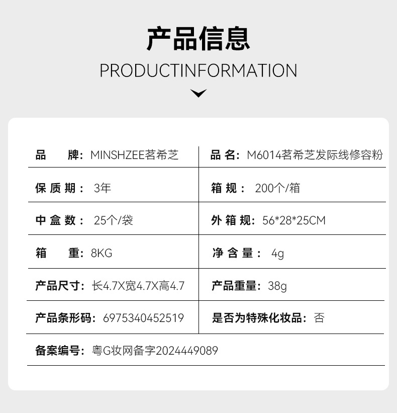 商品名 M6014 ミン・シジ ヘアライン コントゥアリング パウダー