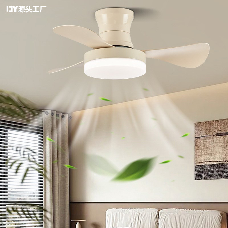 北欧寝室天井灯ファンランプ純色固定葉客間扇風機ランプクリーム風民宿客間吊り扇ランプ