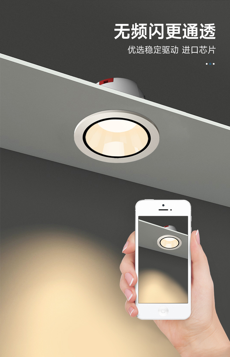 Cobスポットライトled天井灯埋め込み型家庭用背景壁商店のダウンライトスポットライト穴7.5-8.5cm