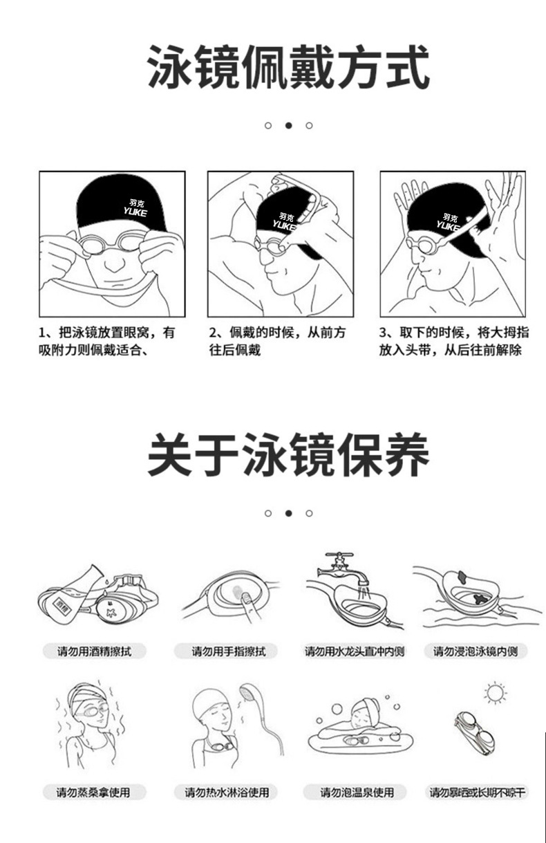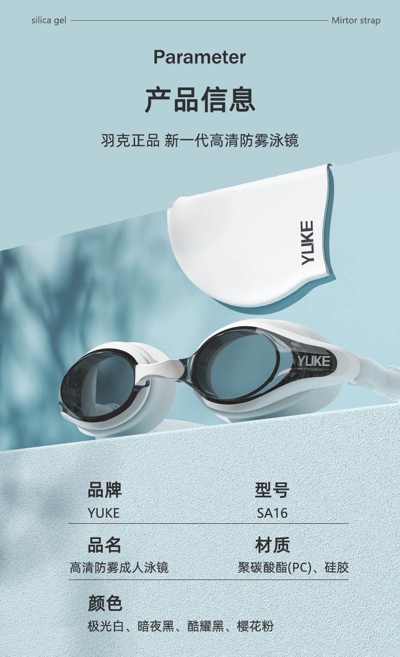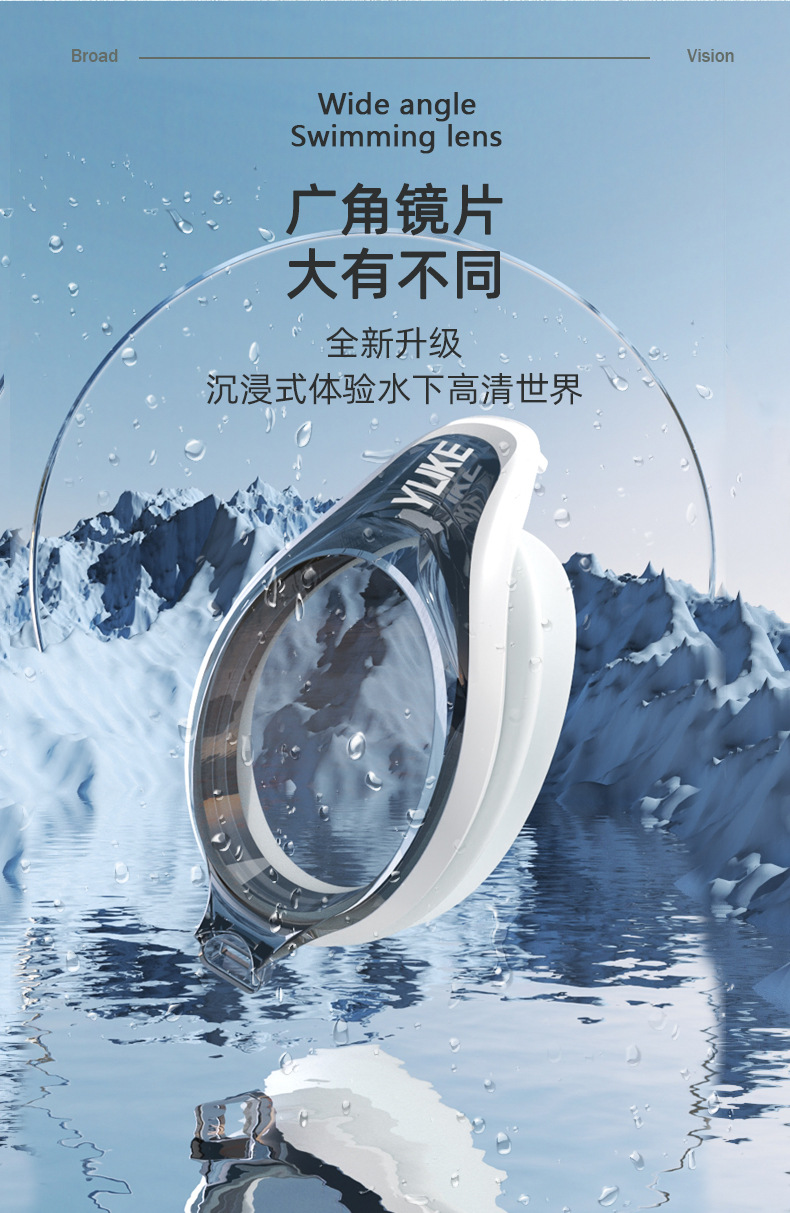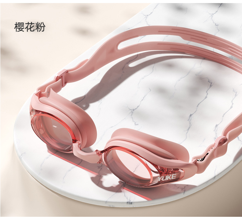 羽克の新型の水泳鏡の男性の女性の電気めっきの防曇水泳のメガネは耳栓の平光の水泳鏡を持って卸売りします。