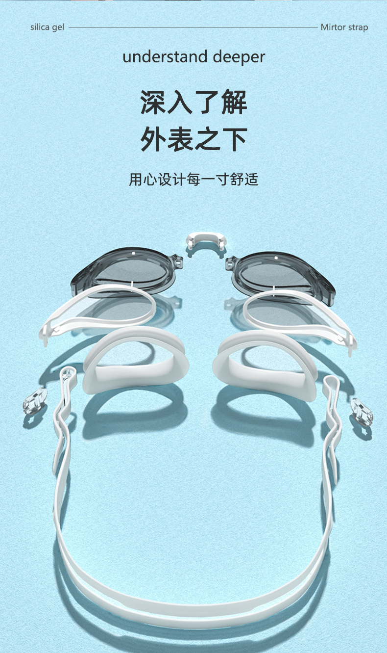 クロスボーダー高精細水泳ゴーグル、曇り止め、目のないシリコーン近視メガネ、防水水泳用品、電気メッキ水泳ゴーグル卸売