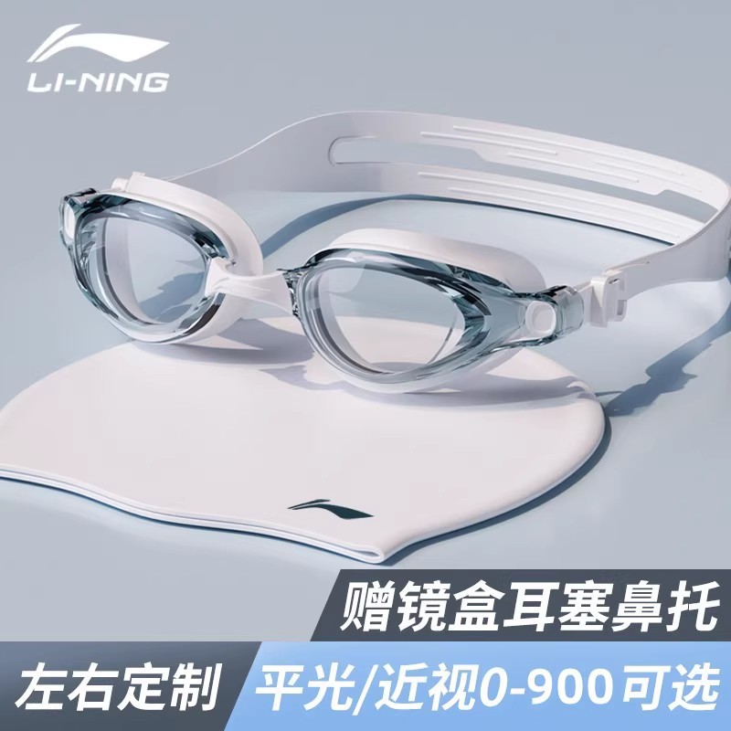 李宁泳镜防水防雾高清男女近视度数游泳眼镜泳帽套装夏季玩水批发