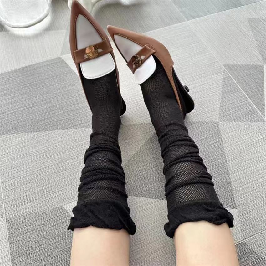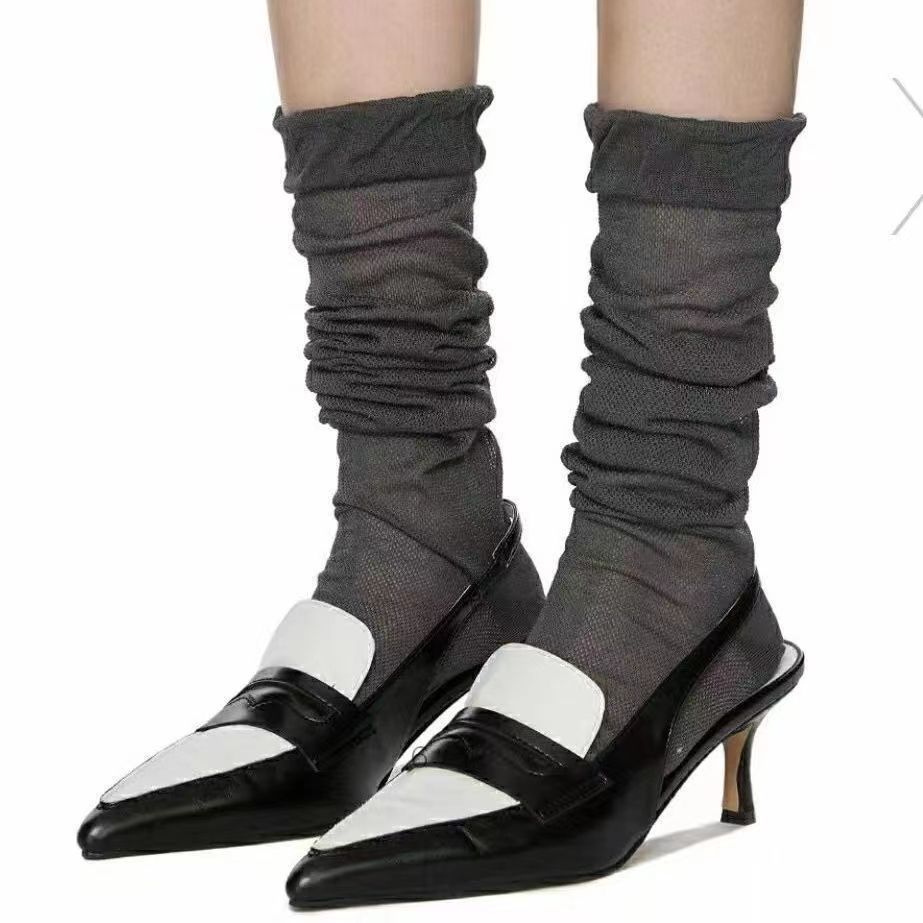 スポット韓国東大門aileen薄手靴下女性ふくらはぎ靴下白黒ピンク純色ファッションスタッキングソックス夏