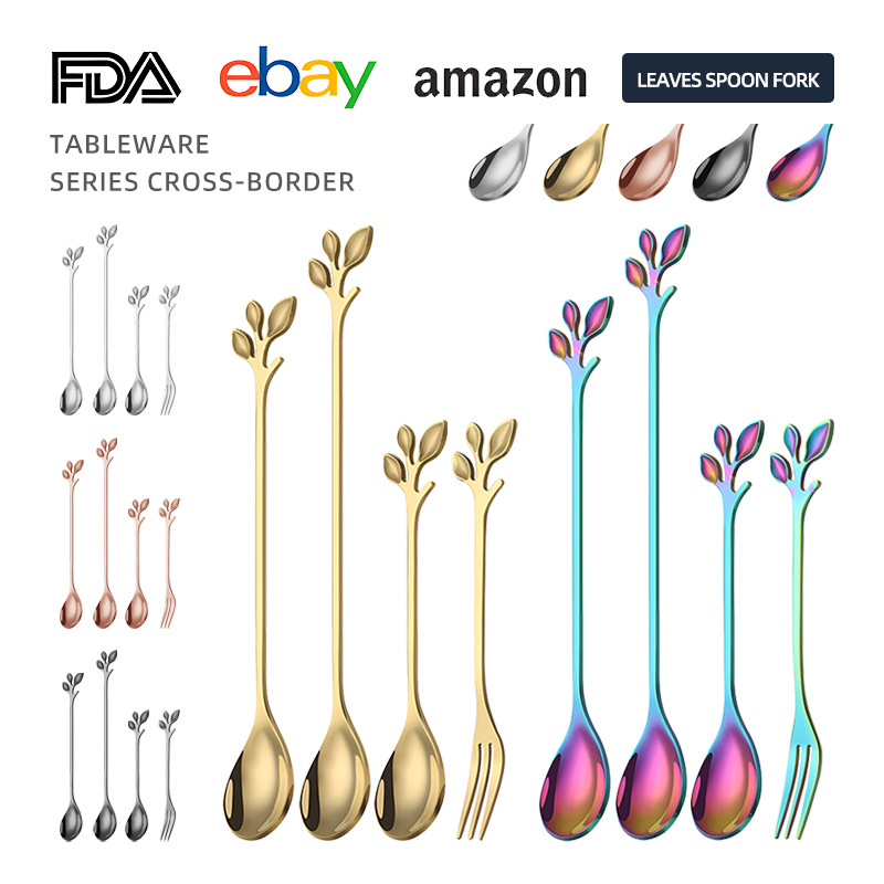 ステンレス鋼のリーフスプーンクリエイティブリーフミキシング・コーヒースプーンデザートツバメの巣スプーンケーキフルーツフォーク卸売ギフト