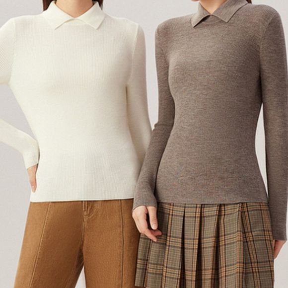 兄弟の新作婦人服2025春秋スリムフィット小襟無地プルオーバーウール長袖ニットセーター女性用