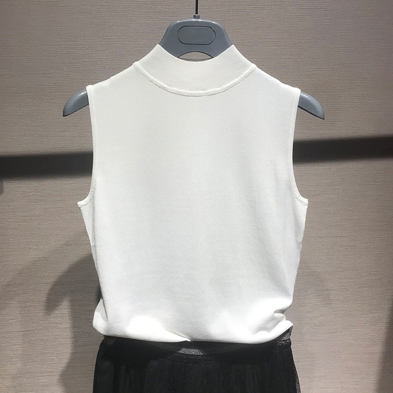 Gejia の新しい 2024 夏ハーフハイシガレットネックボトムアイスシルクセーターノースリーブインナーベスト Tシャツ女性用