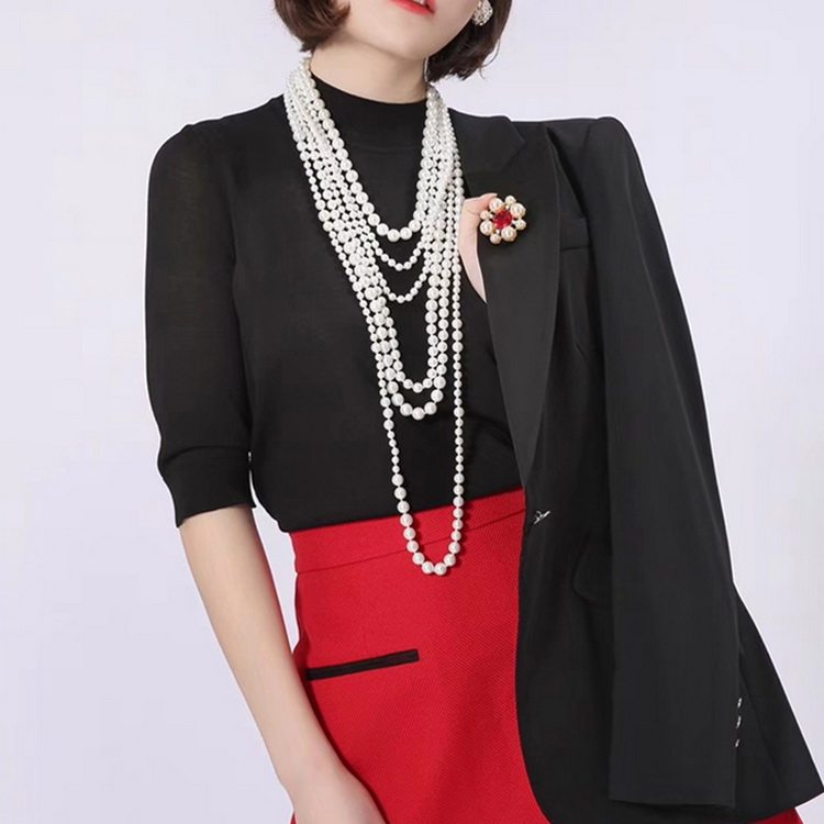 Ge の新しい婦人服 2024 秋と冬の新しいスリムブラックウールシャツ女性の長袖底長袖シャツ