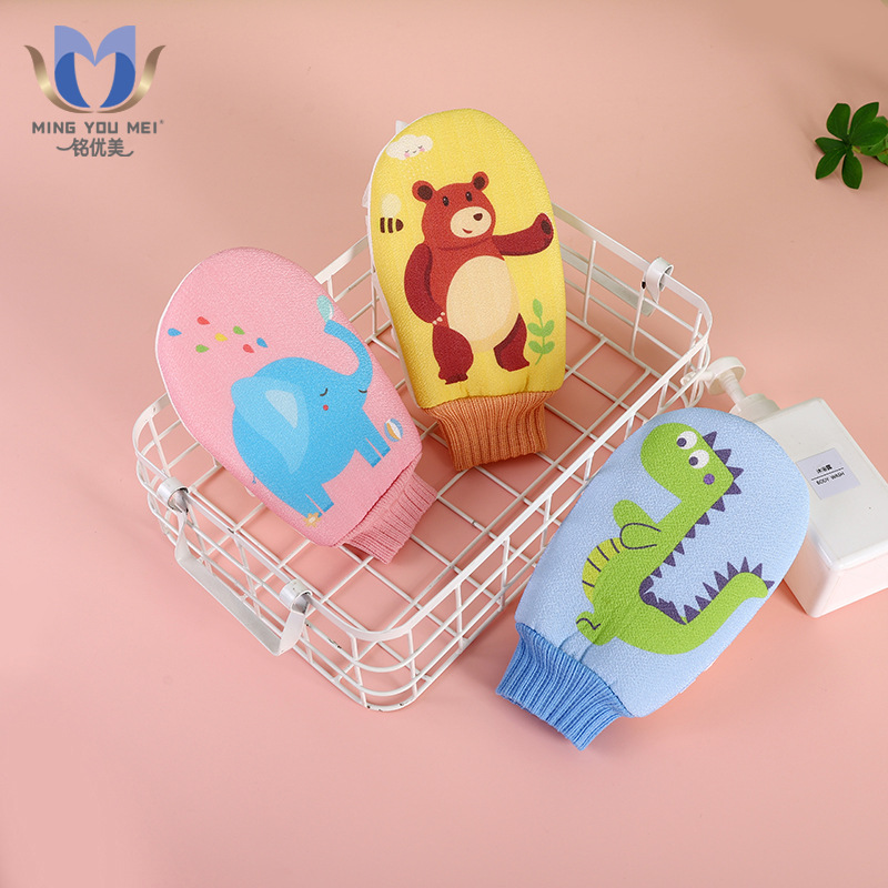 漫画の入浴手袋の子供の風呂タオルの細い砂は痛みがなくて、泥をこすります。