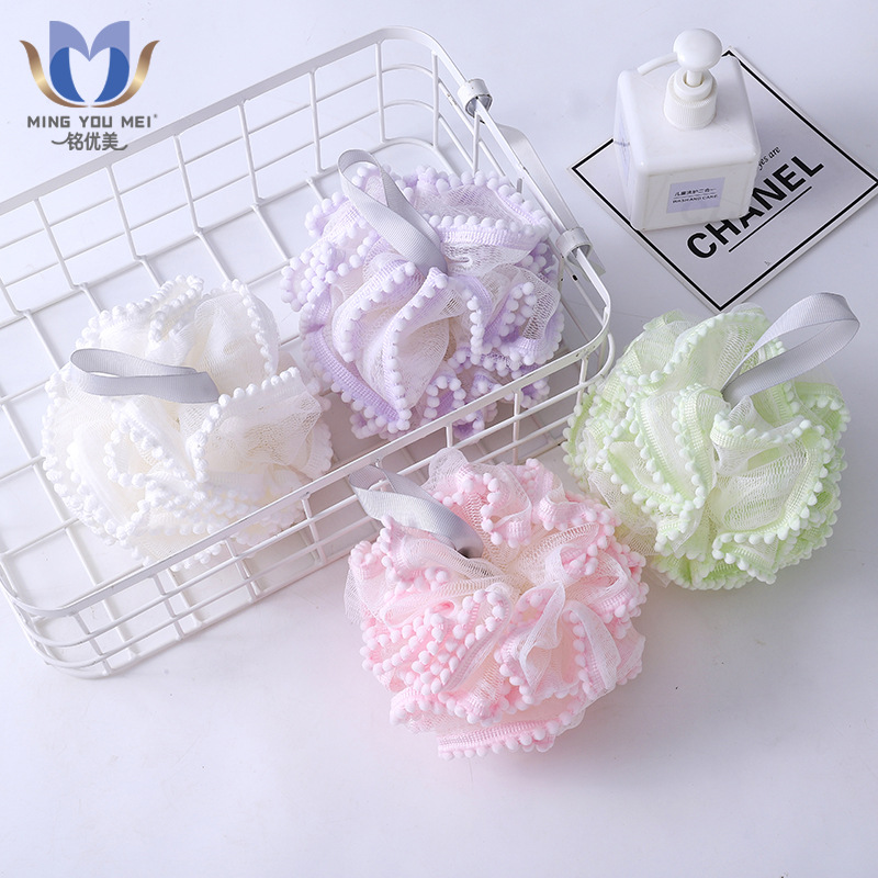子供の漫画の綿ボールバスフラワーボールドットレースバスボールかわいいバブルボール背中をこするバスアーティファクト