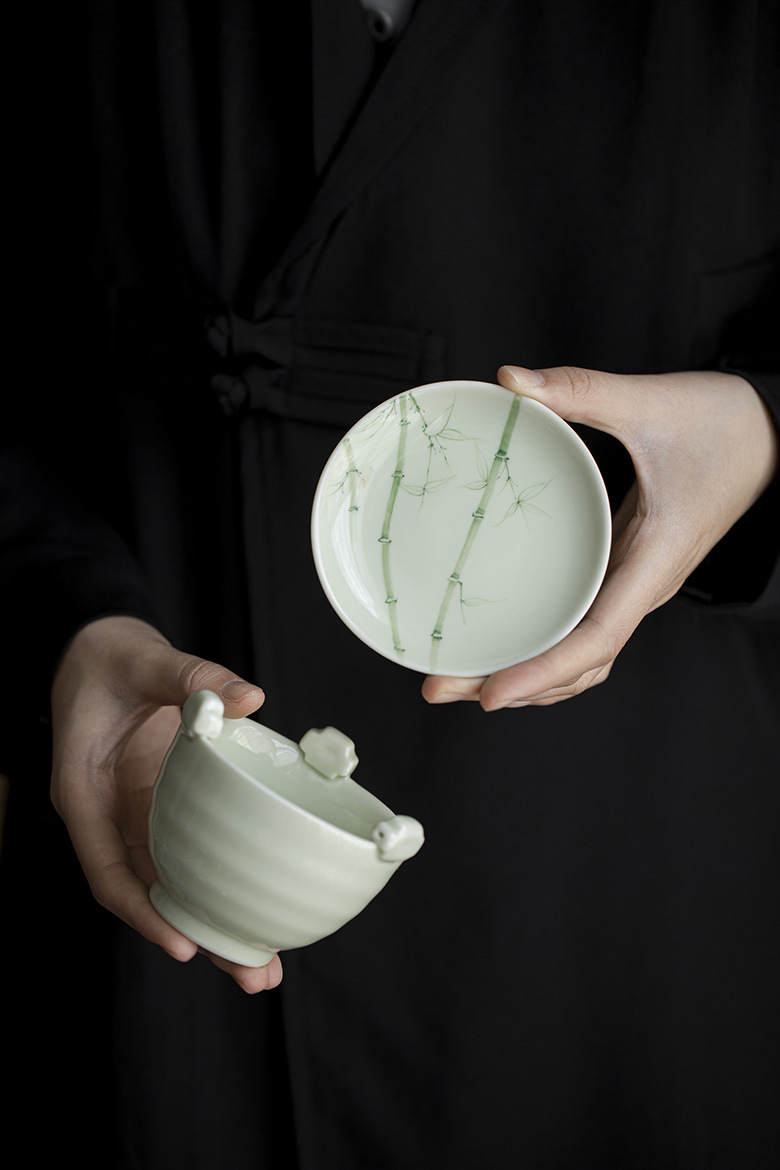 墨己手描き陶磁器焼き茶器竹磁器板画茶道部品文人焼き茶器工夫茶器