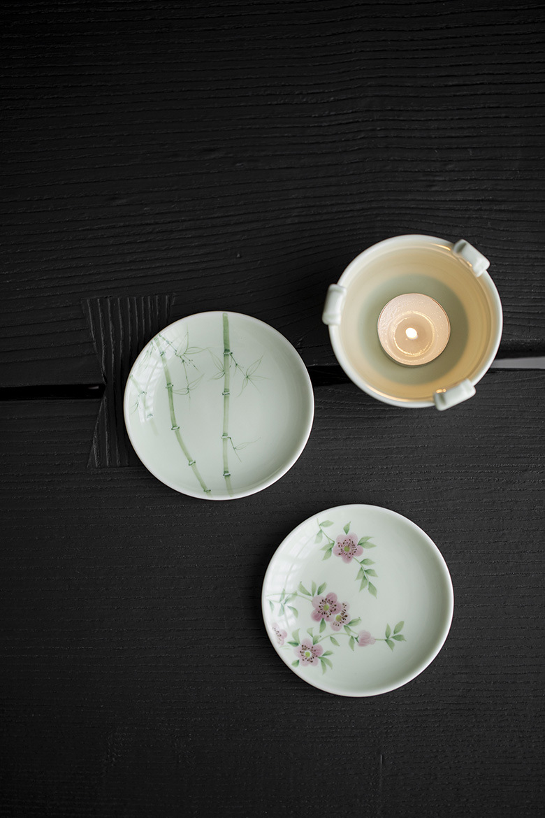 墨己茶空間陶磁器燭台手描き蝶梅ガラスランプカバー点ろうそく台底托文人器