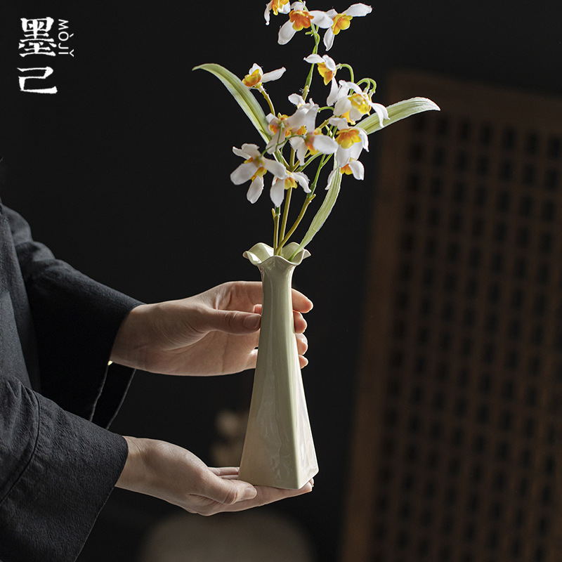 墨己は宋緑釉花芸瓶の茶道の部品の陶磁器の花をまねて茶道の小さい瓶の茶室の空間の置物を挿します。