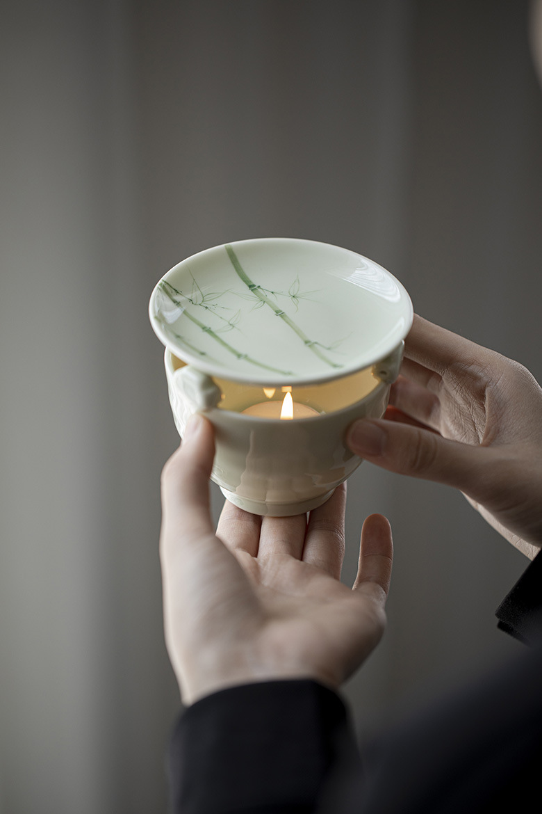 中式手绘焙茶炉陶瓷茶叶提香器蜡烛加热烤茶炉醒茶烘烤炉熏香炉