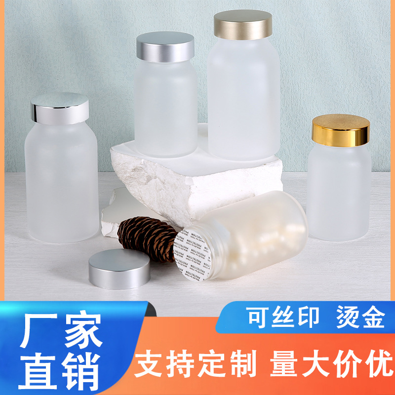 半透明のつや消しボトル、増粘健康製品ボトル、タブレットキャンディ包装ボトル、食品グレードのガラスボトル、カプセルボトル