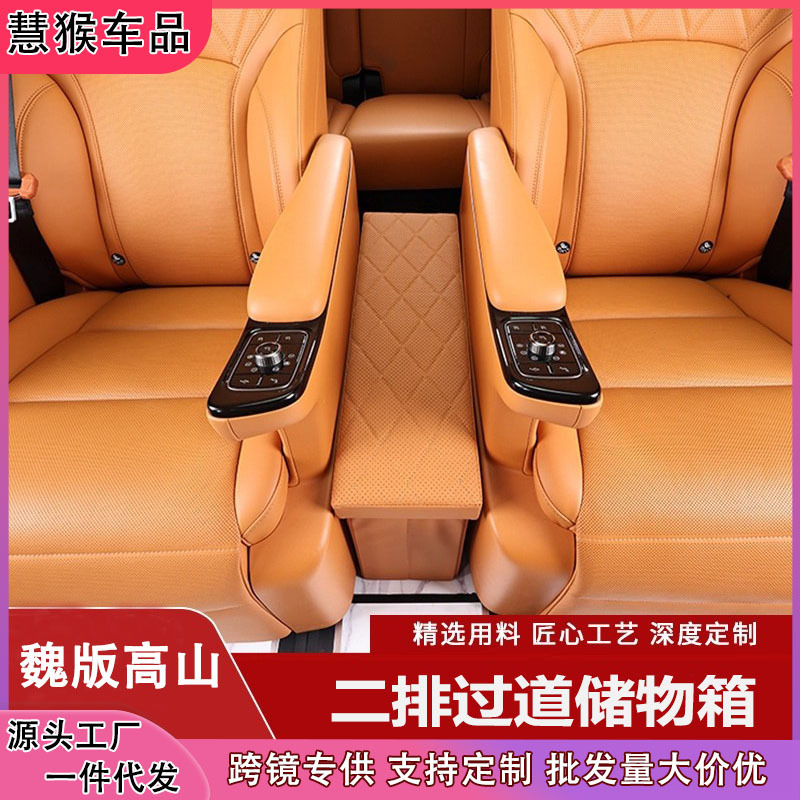适用于腾势D9中排座椅储物盒收纳置物箱可折叠汽车二排扶手储物箱