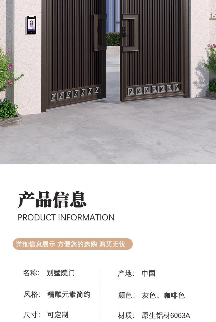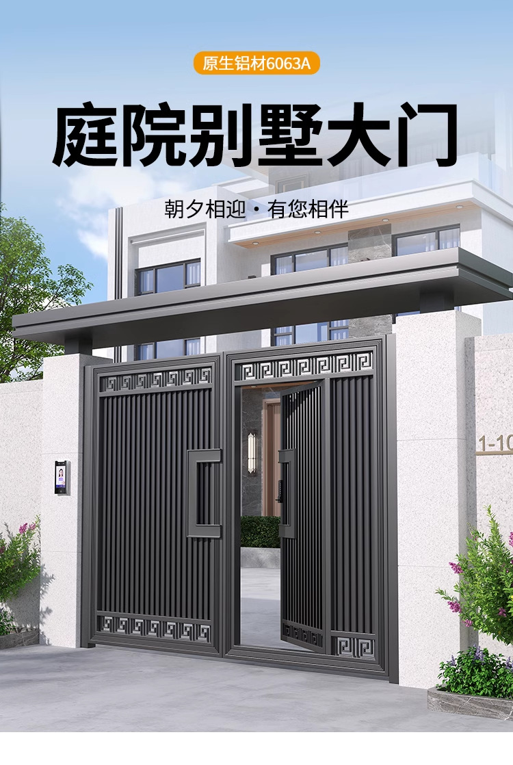 新中式铝合金别墅大门庭院大门双开门农村自建房院子门花园子母门