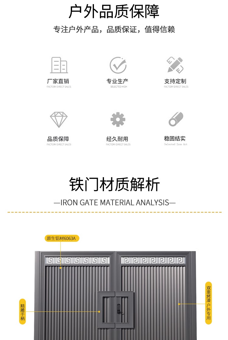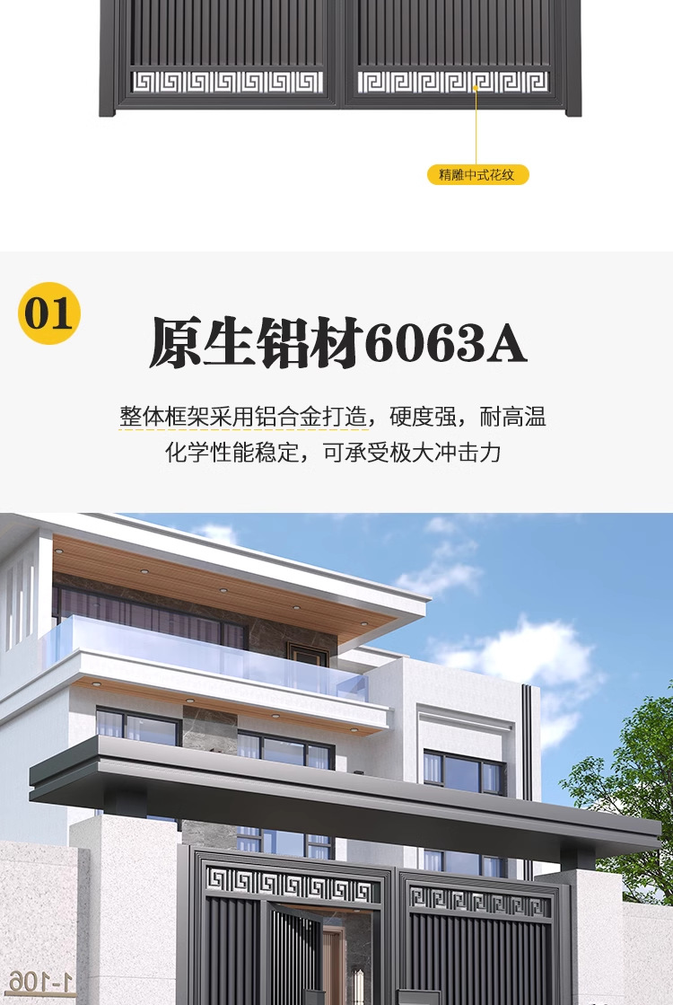 新しい中国風のアルミアート中庭ゲート玄関ドアヴィラ田舎庭家族自宅商業カスタマイズ