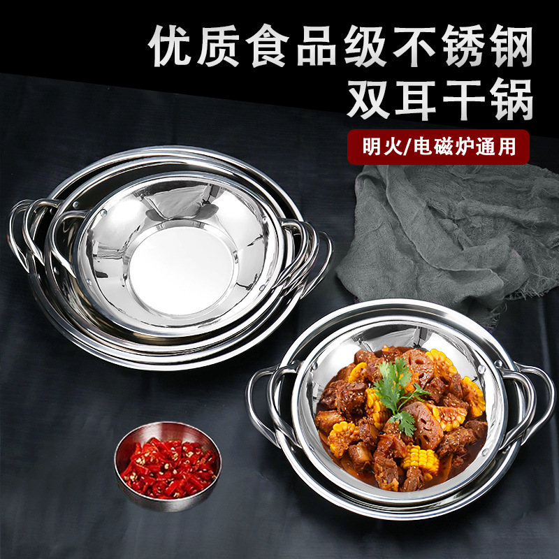 ステンレスの鍋の子の酒のバーの鼎の業務用の小さい鍋のアルコールストーブの乾燥している鍋の鍋のたらいは厚い乾燥している鍋の浅い底のフライパンです。